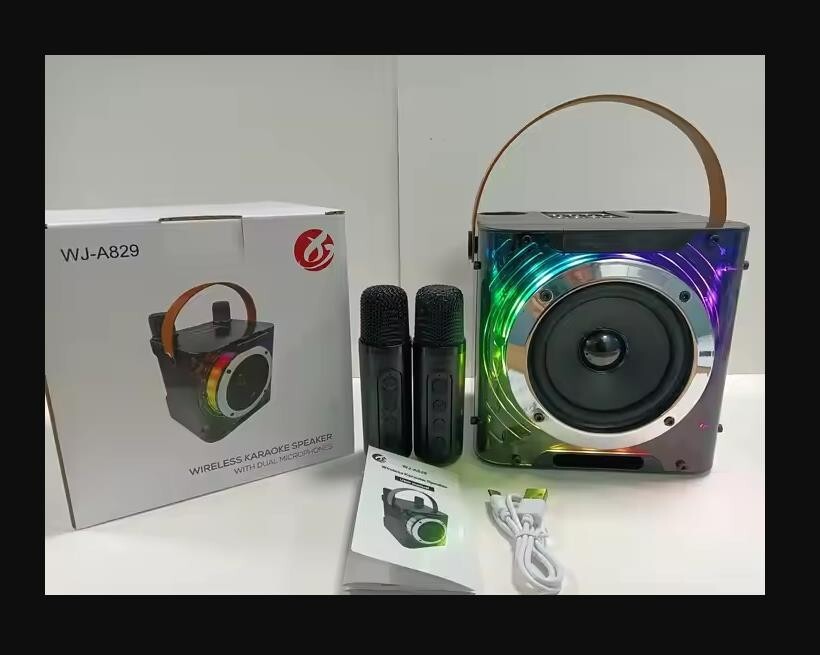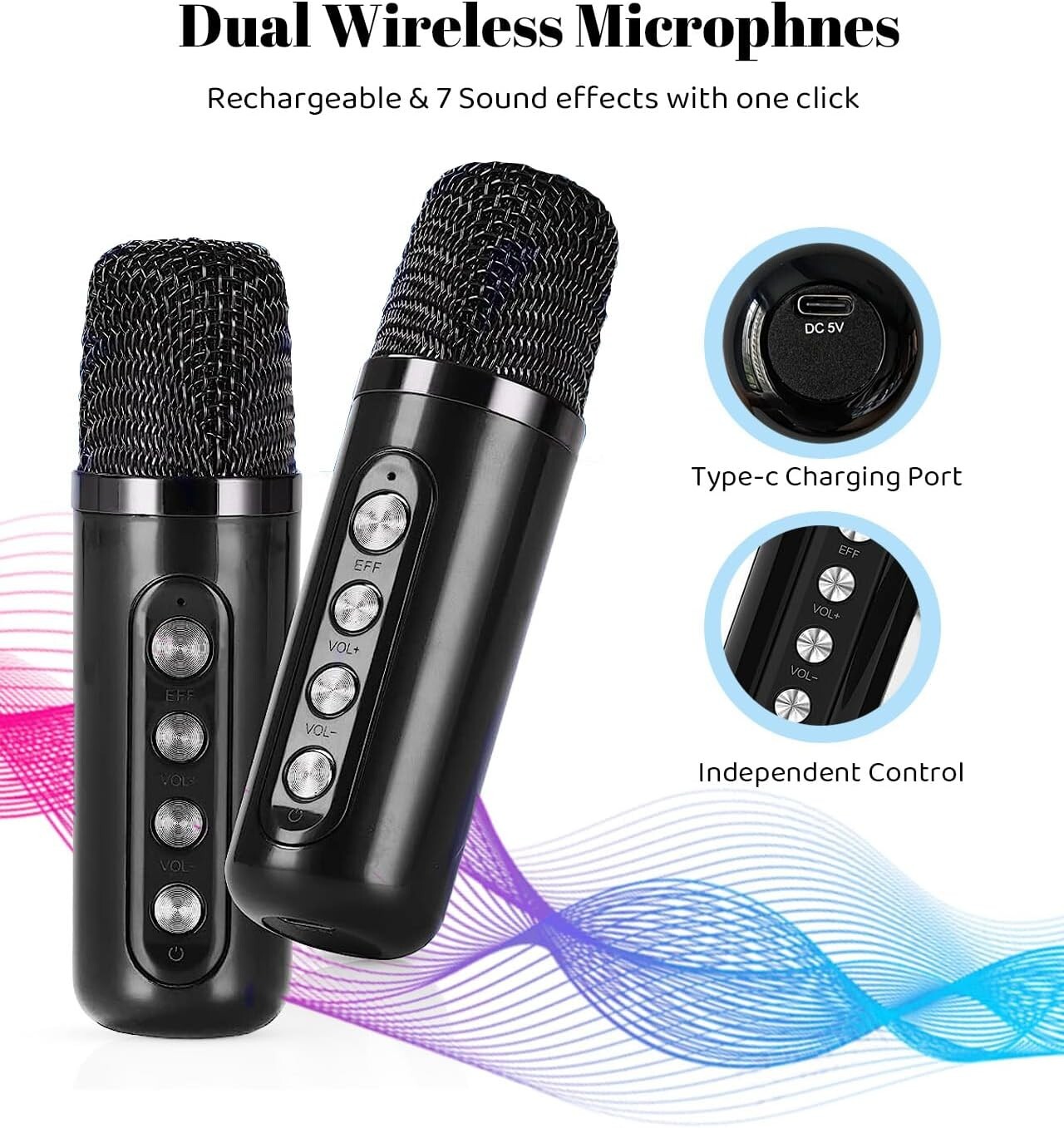 Karaoke Machine with 2 Wireless Microphones Portable Bluetooth 5.0 Speaker Light