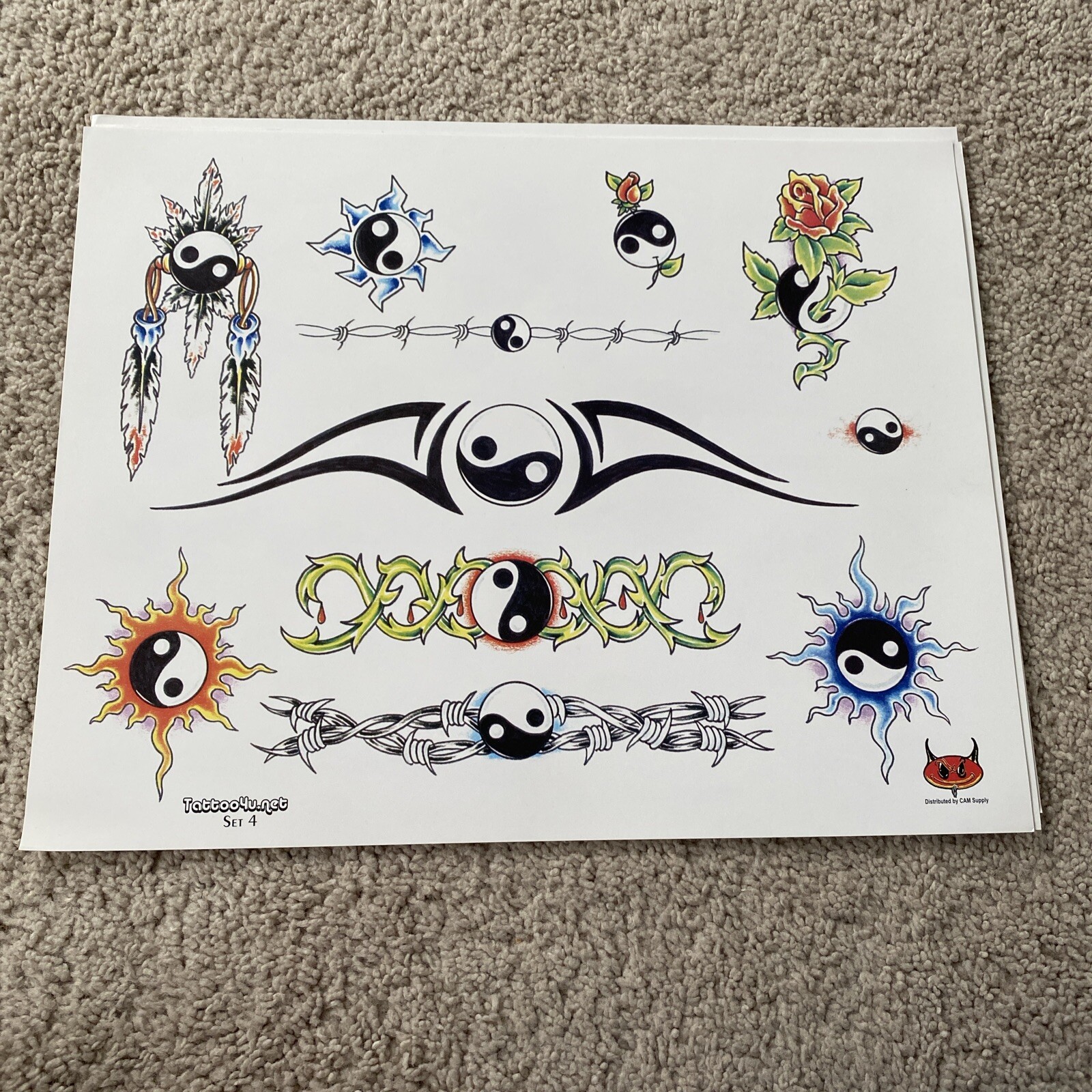 как выглядит Lot Of 8 Art Tattoo Shop Flash Sheet Tribal Flowers Skulls Yin Yang Cam Supply фото