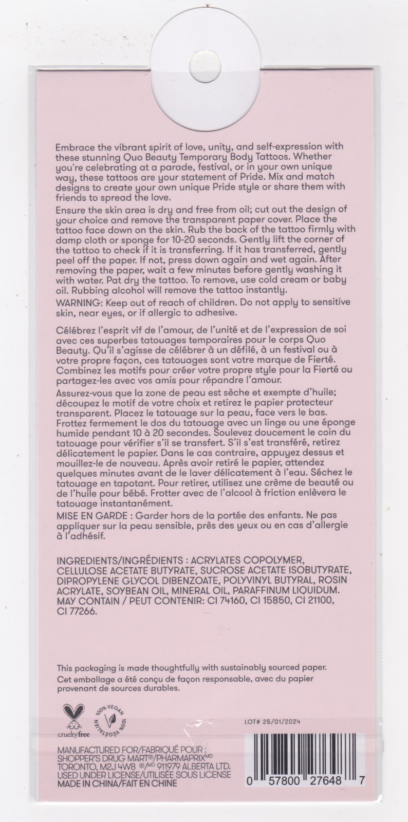 QUO BEAUTY PRIDE TEMPORARY TATTOOS - 1 SHEET - 8 TATOOS TOTAL - BRAND NEW