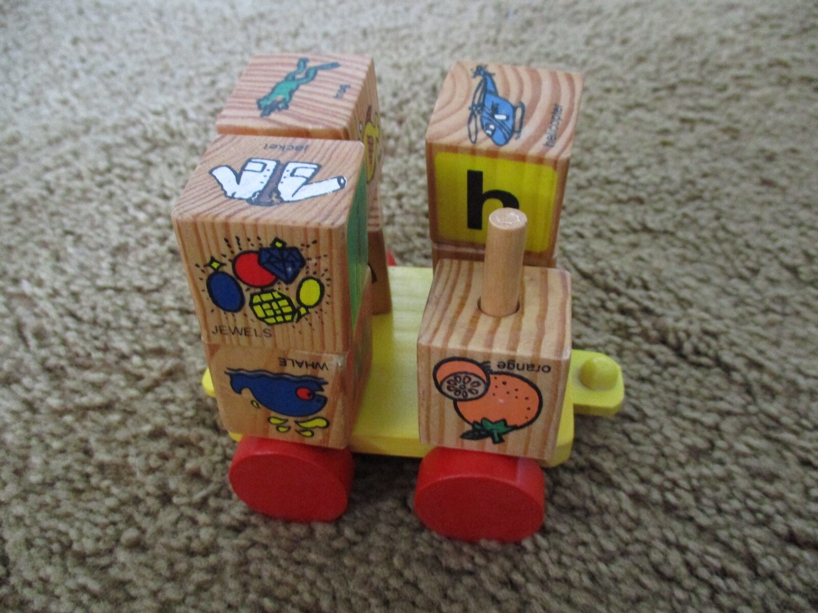 как выглядит VINTAGE EDUCATIONAL WOODEN PULL ALONG TOY TRAIN SET фото
