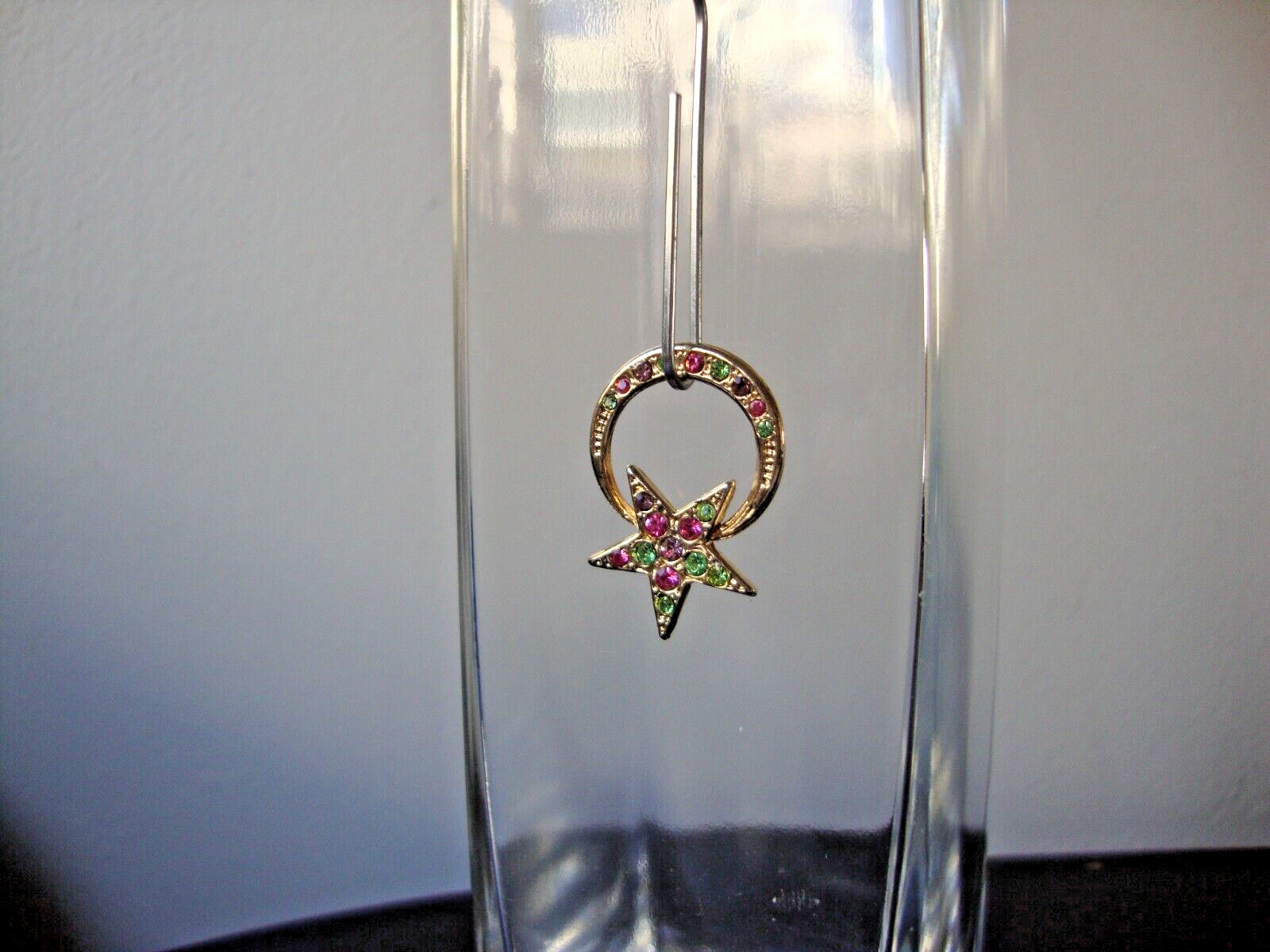 как выглядит VINTAGE OPEN STAR CRESCENT MOON MULTICOLOR PASTEL RHINESTONE GOLD TONE PENDANT фото