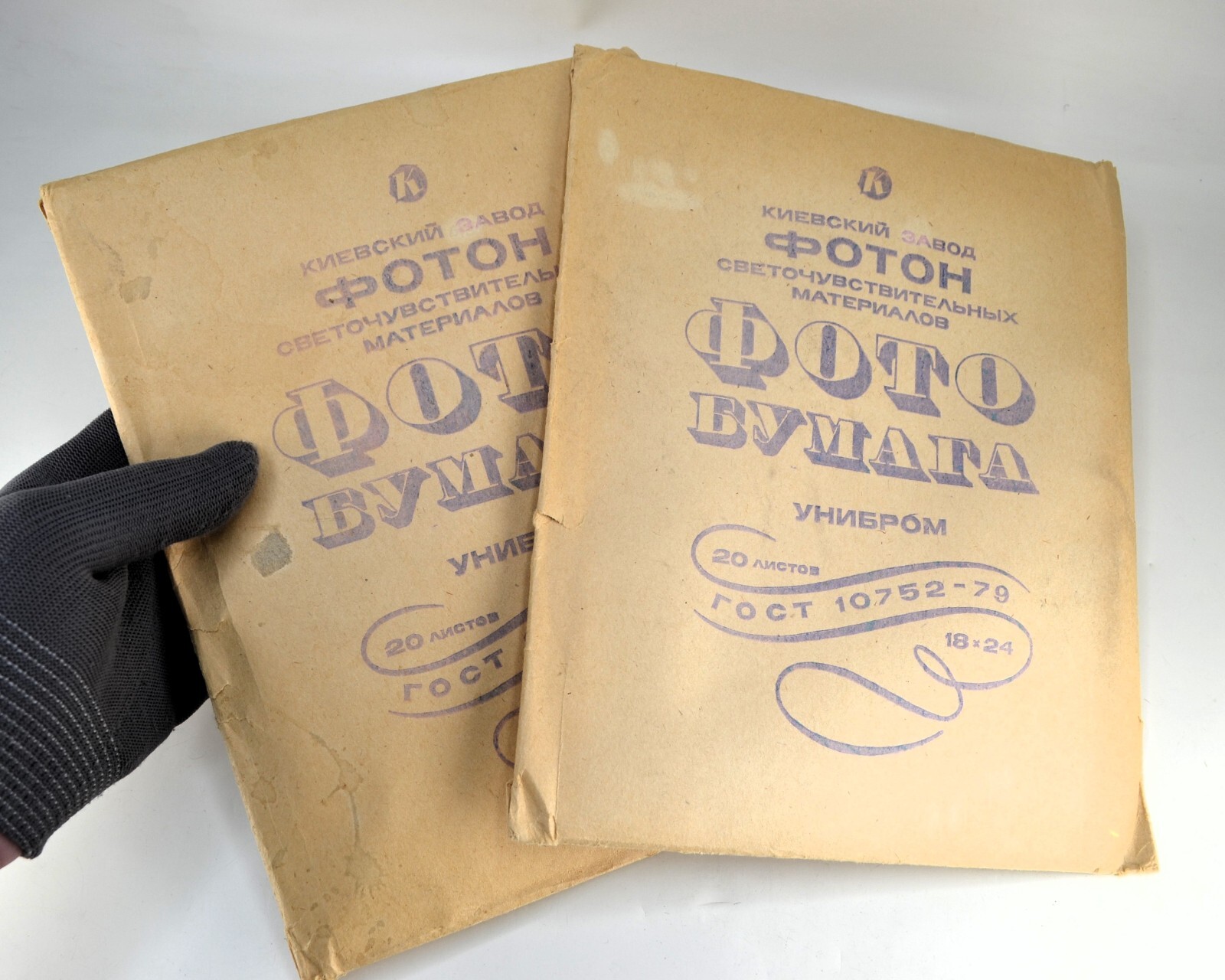 как выглядит SET OF 2 USSR 18x24cm EXPIRED UNIBROM GLOSSY WHITE SLIM PHOTOPAPER PACKS 1982 фото