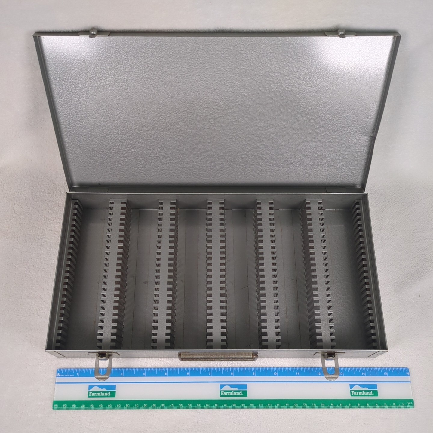 как выглядит Vintage Metal Storage Box Case For 35mm Slides - Double Latch With Handle фото