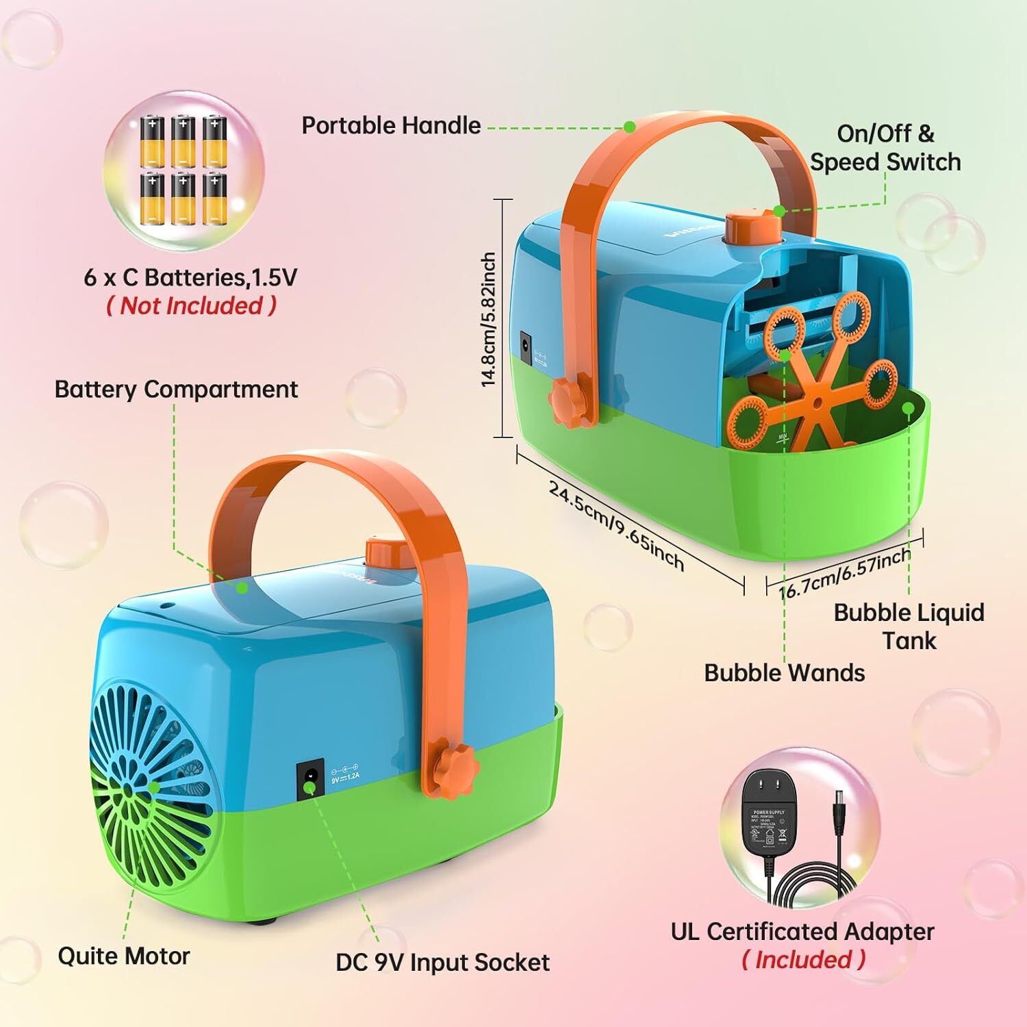 Bubble Machine Automatic Blower 2 modes 18000 Big Bubbles Per Min Kids Toys