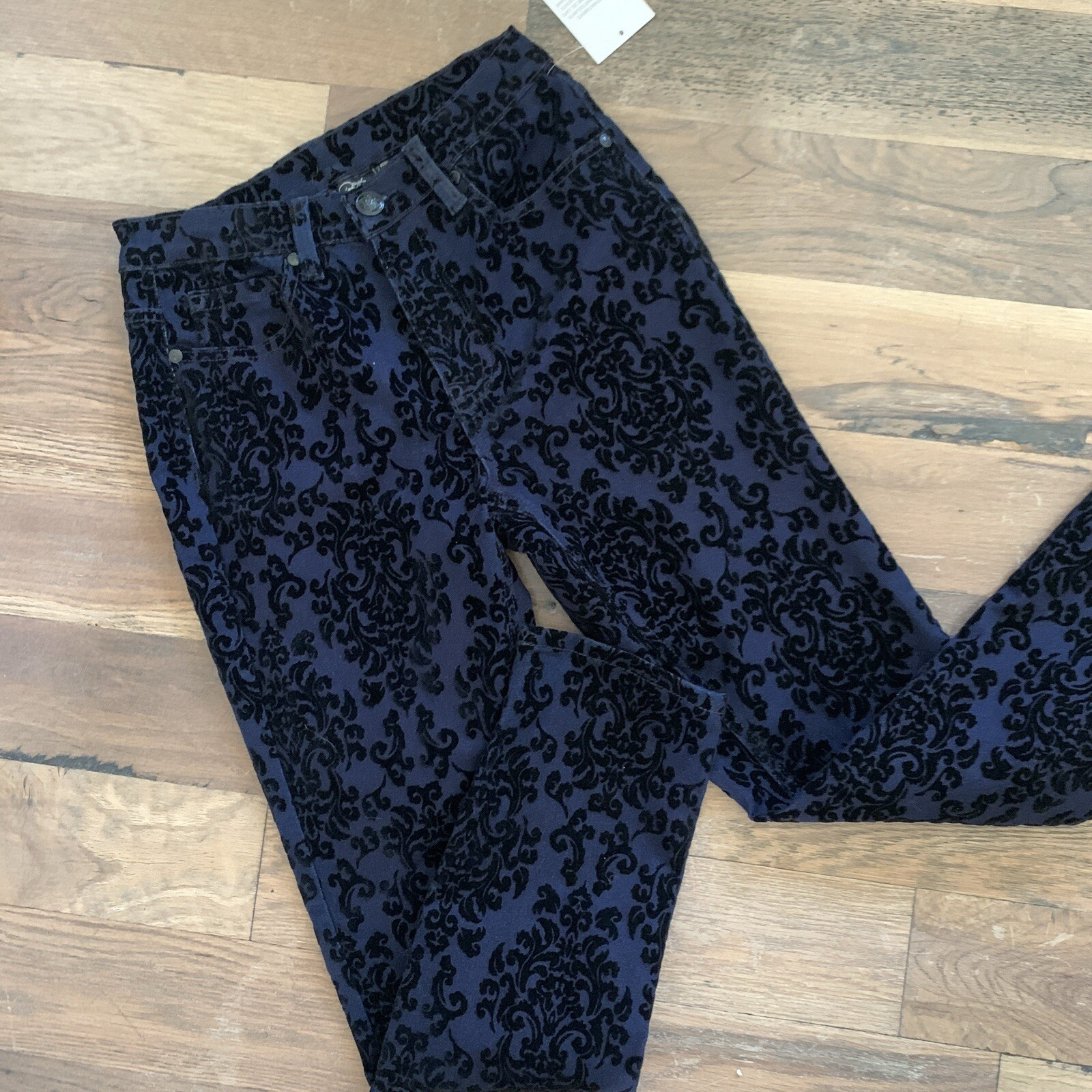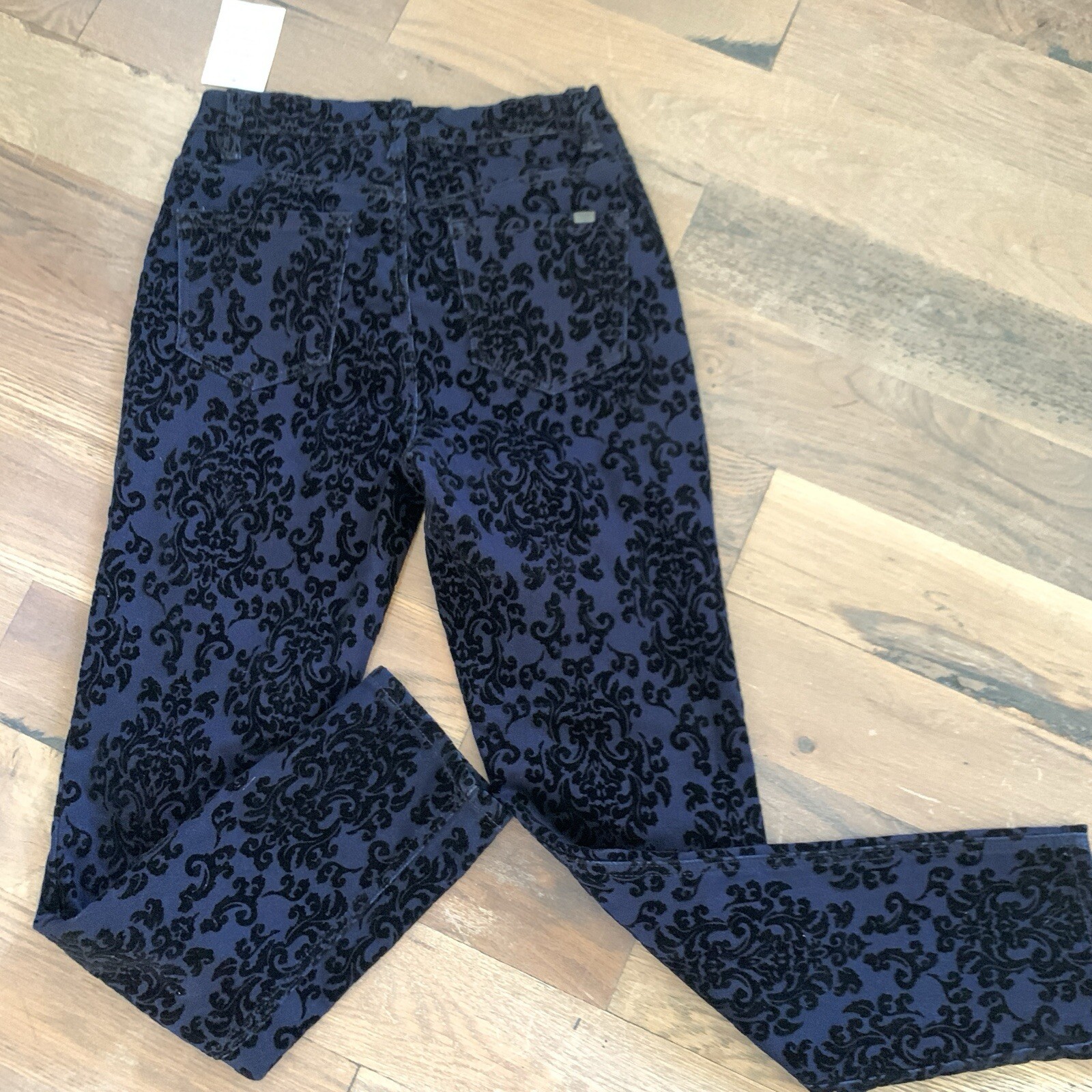 DG2 By Diane Gilman Blue Embellished Denim Velour Pants Size 2