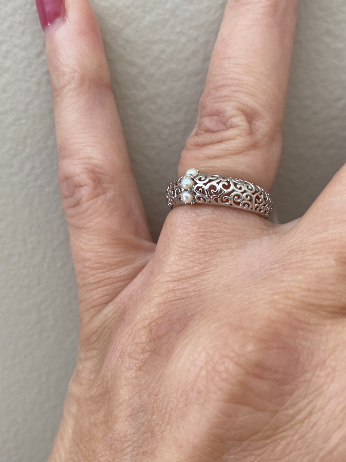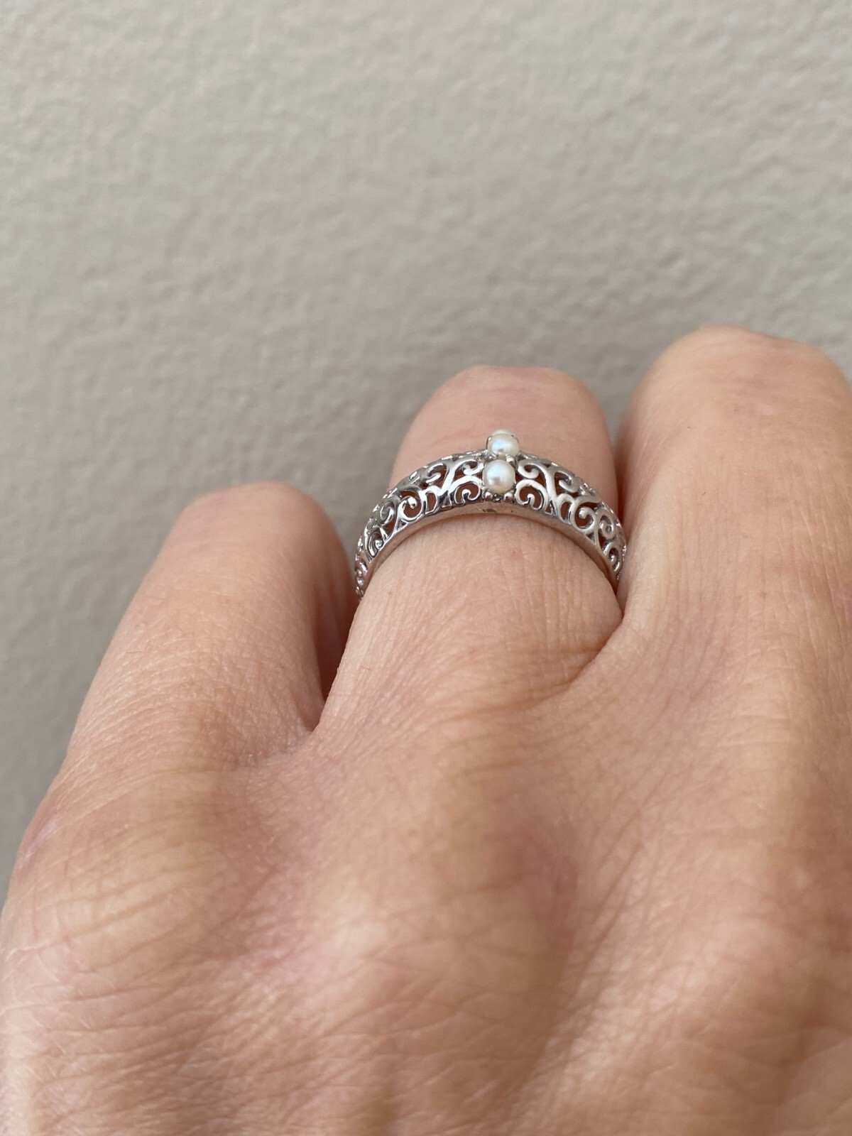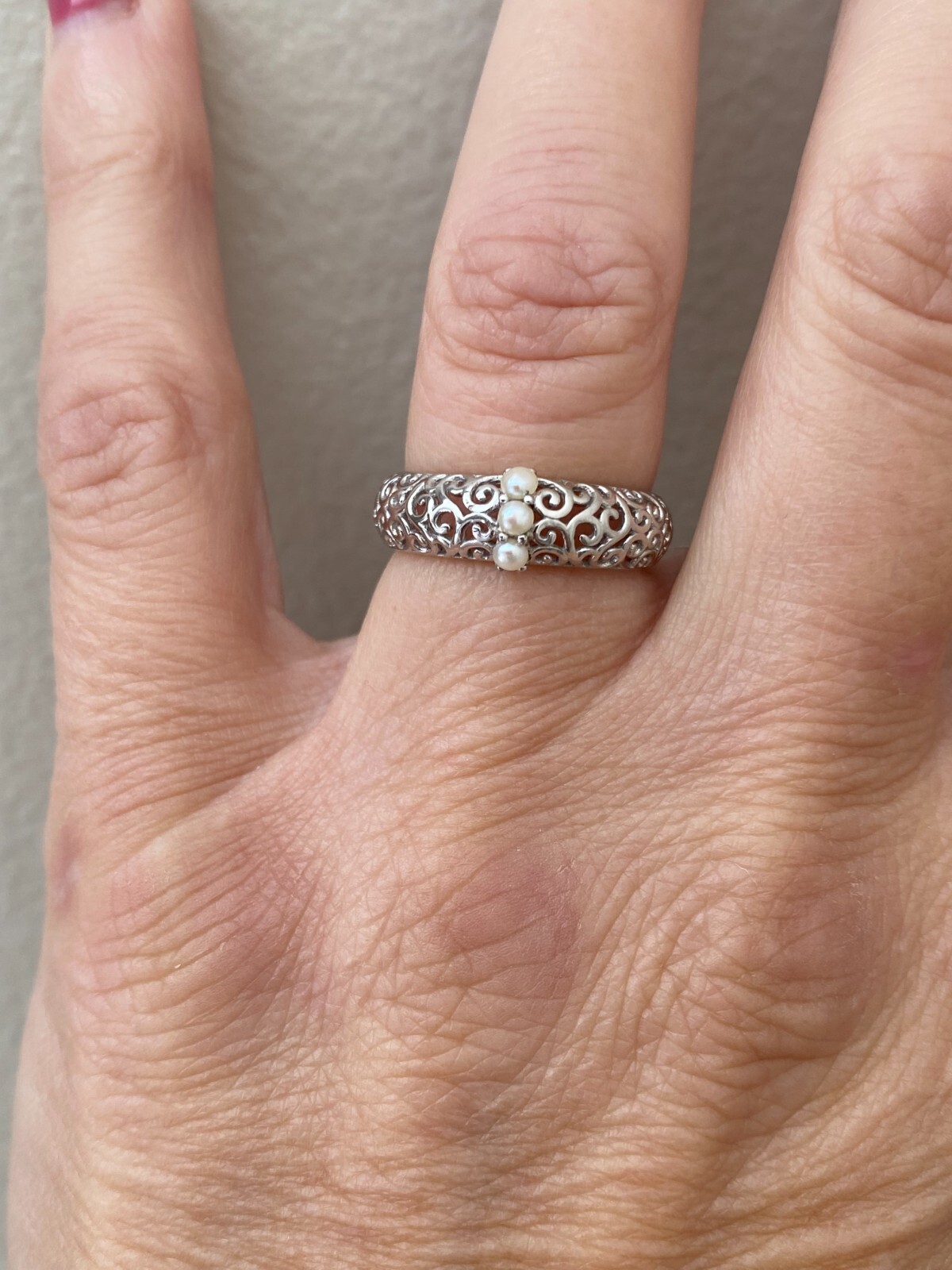 как выглядит Genuine Freshwater Pearl Scroll Detail 925 Silver Band Ring Size 7 фото