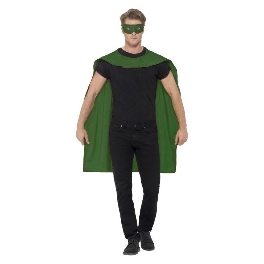 Cape Adult Green with Matching Green Eyemask Superhero Costume Accessory
