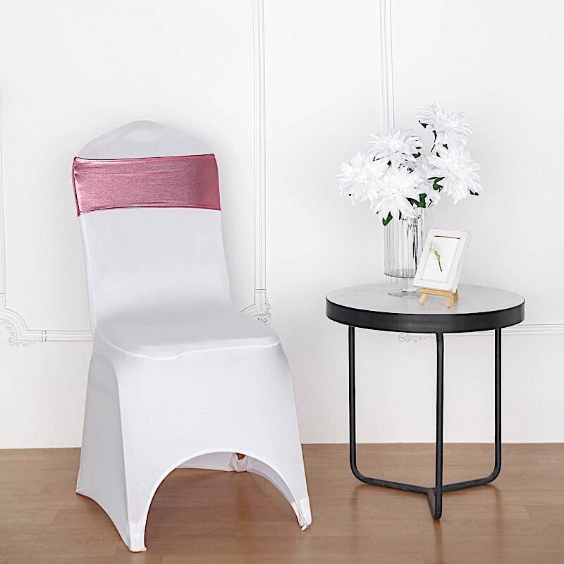 10 Rose Gold Metallic Spandex Chair Sashes Silver Buckles Wedding Decorations