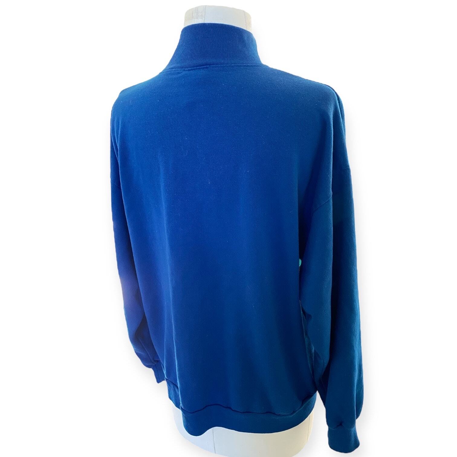 Vintage Mock Neck Blue Geometric Sweater Print Oversized Sweatshirt M/L