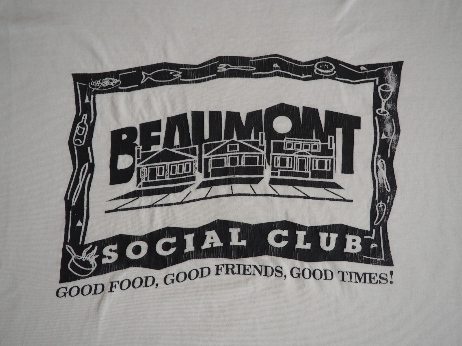 VTG 90s HANES Beaumont Social Club Bar Promo Art White Tee T-Shirt Mens 2XL