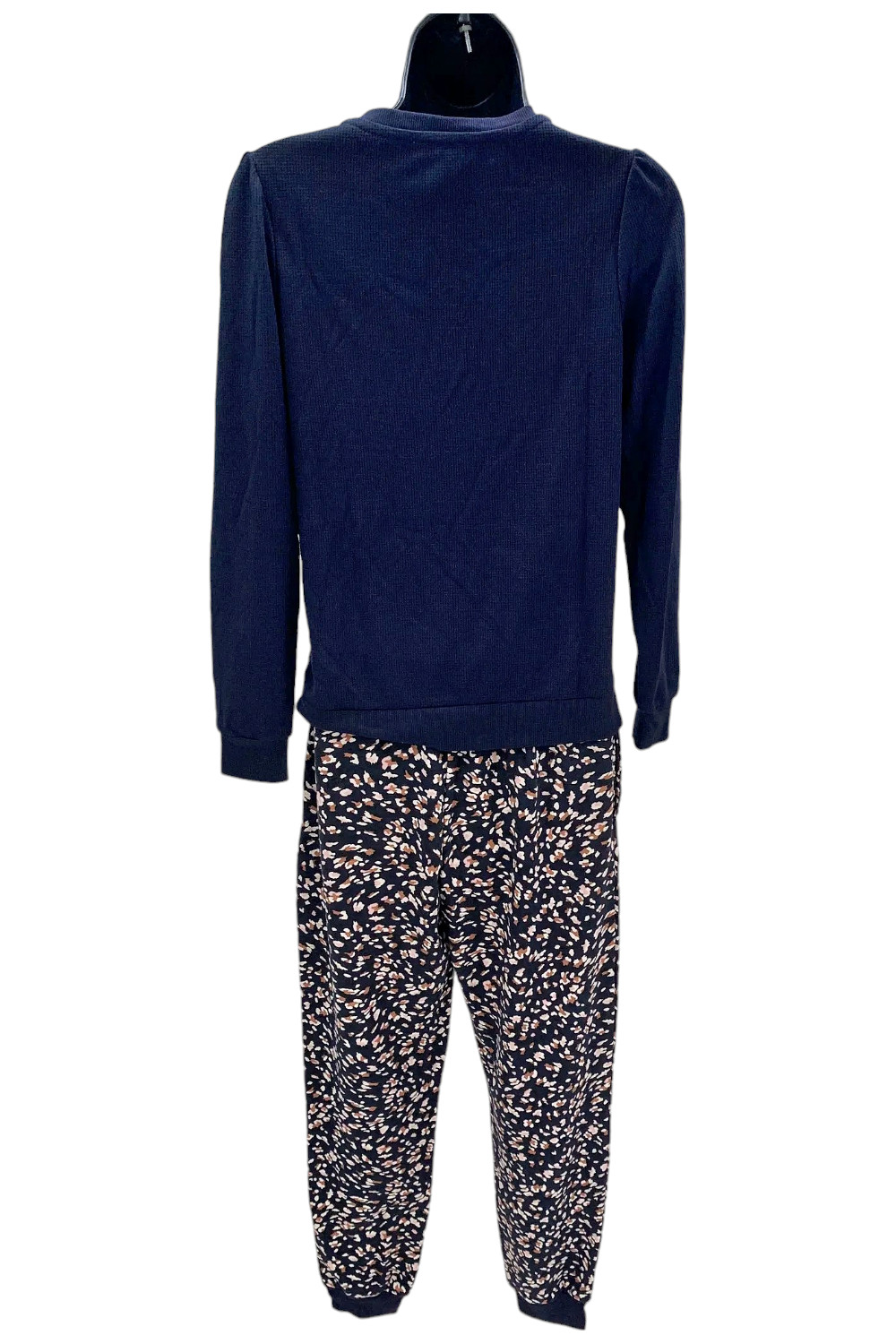 как выглядит Splendid Waffle Mixed Puff Sleeve Top and Jogger Lounge Set Navy фото