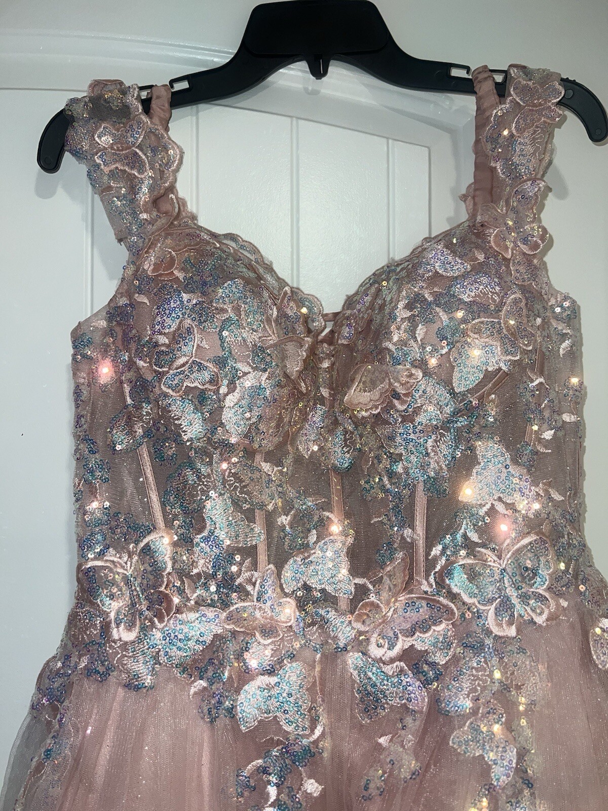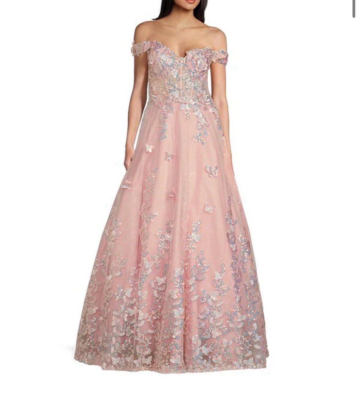 как выглядит coya collection pink blush off the shoulder 3D butterfly corset dress фото