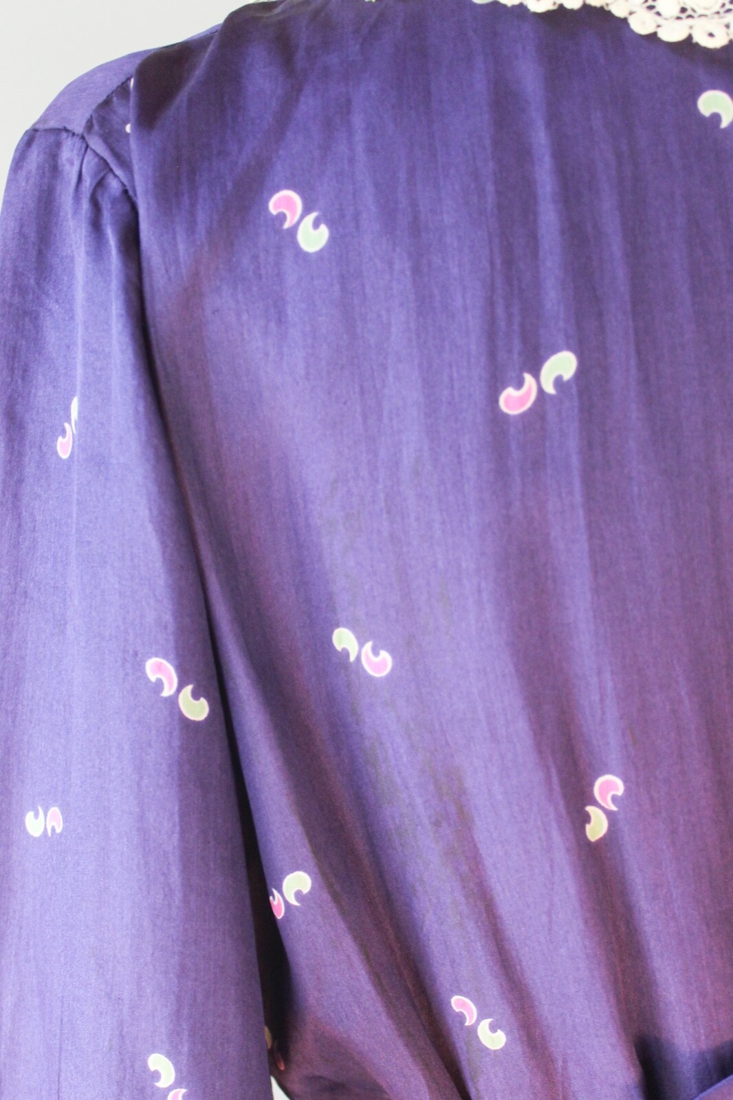 как выглядит Antique 1910s Edwardian Purple Printed Silk Embroidered Lace Trim Dress EX COND фото