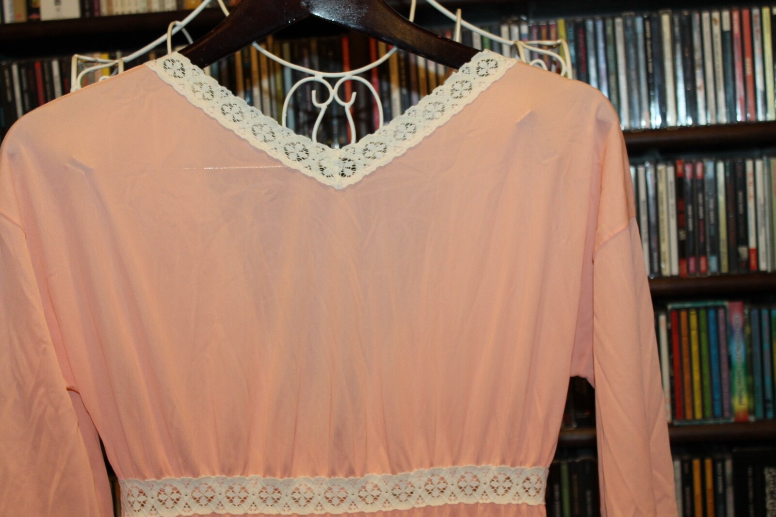 как выглядит Gossard Artemis Peach long Gown long sly lace trim S Vintage Style 7114 bin307 фото