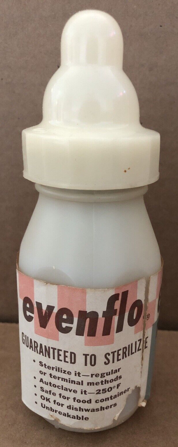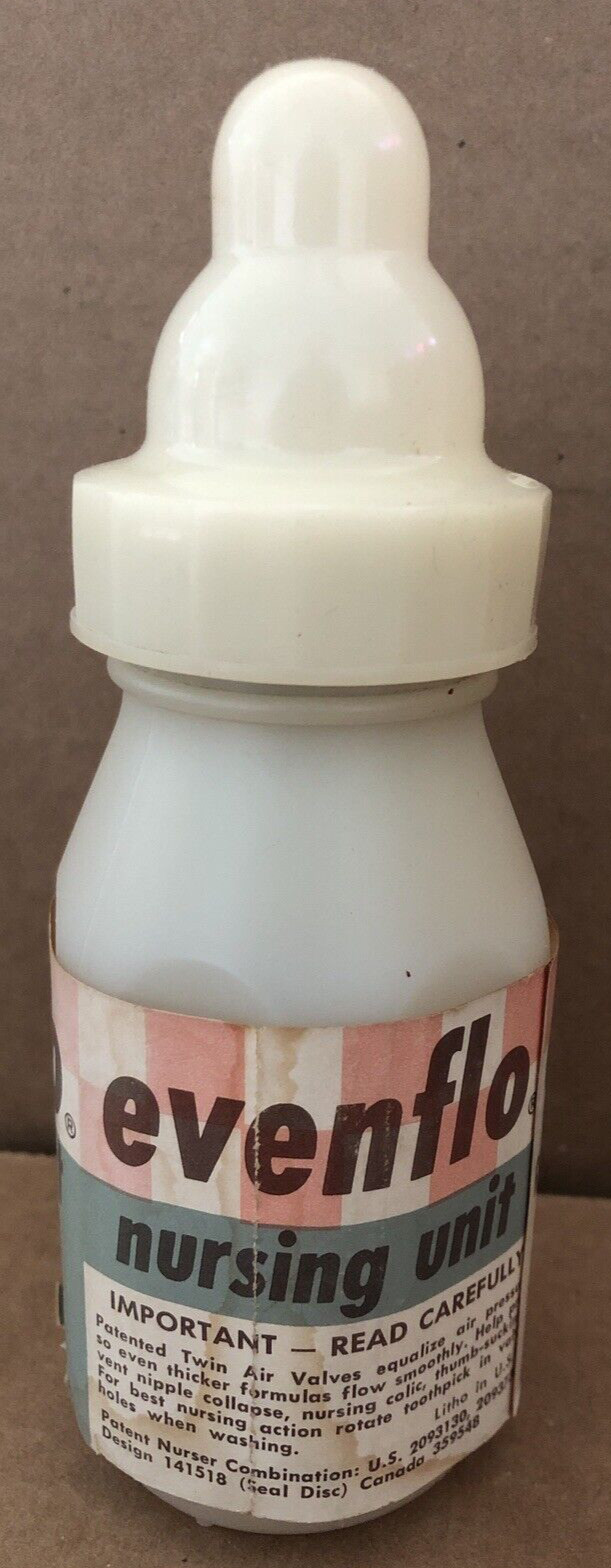 Vintage EVENFLO Nursing Unit SUPER PLASTIC Baby Bottle w/ Original Sleeve 1st