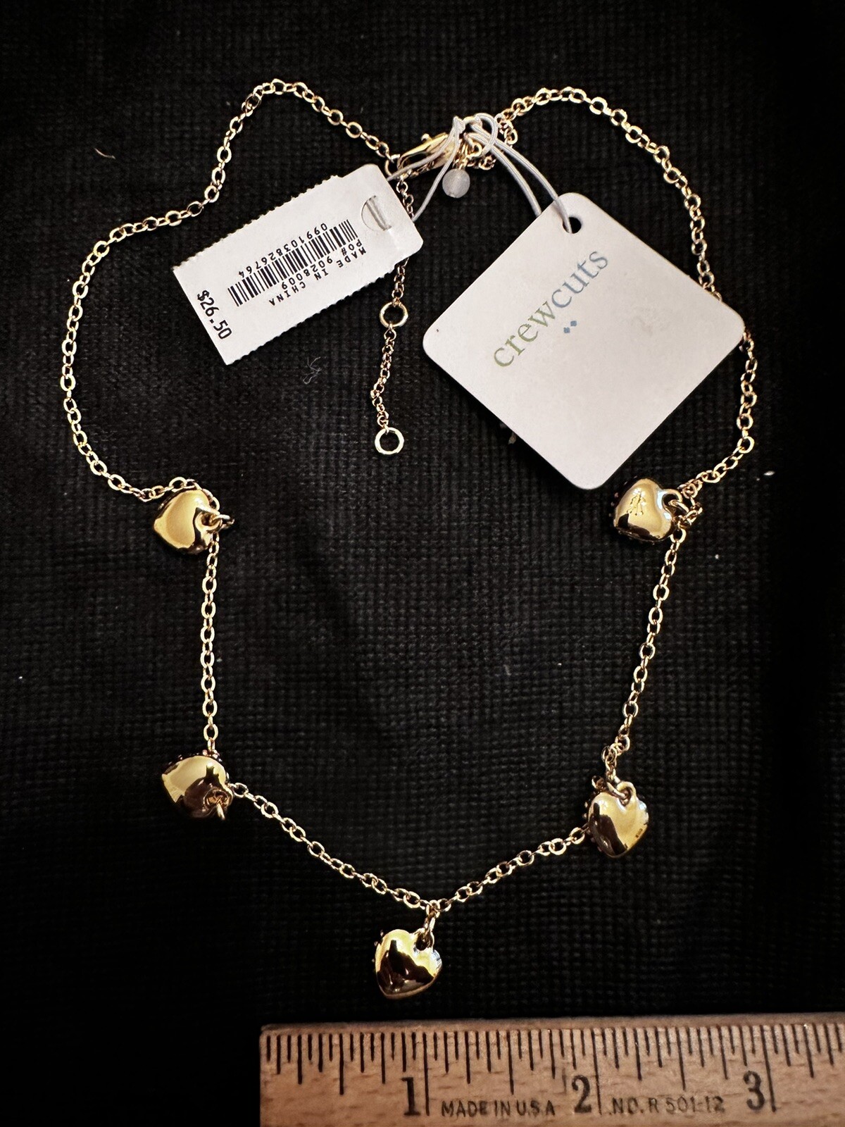 как выглядит J Crew Crewcuts Heart 20 In necklace pink tips gold back gold tone chain adj фото