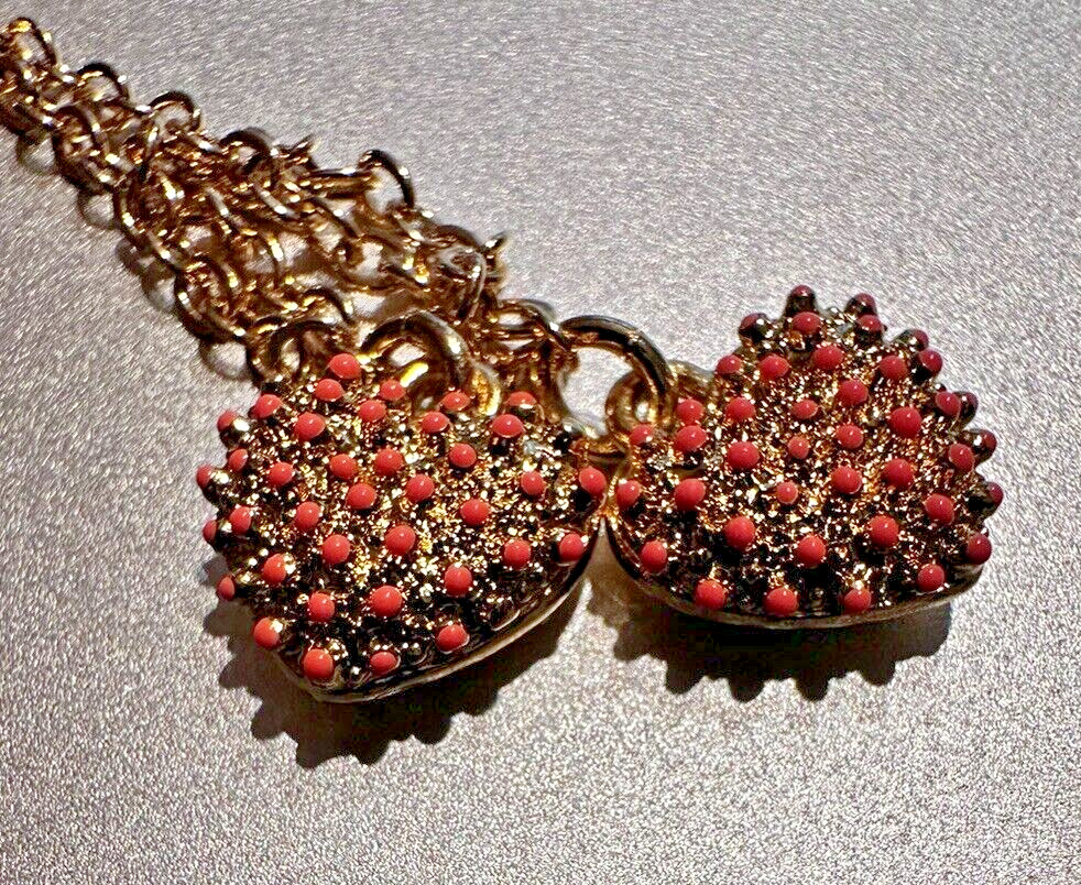 J Crew Crewcuts Heart 20 In necklace pink tips gold back gold tone chain adj