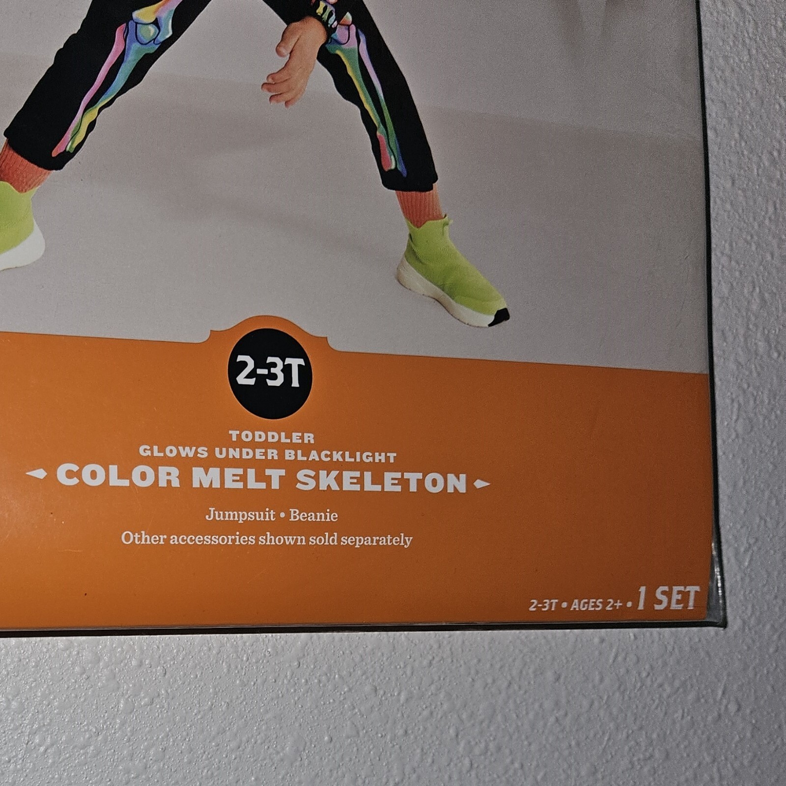 NEW Color Melt Skeleton Halloween Costume Toddler 2T-3T Glows Under Blacklight