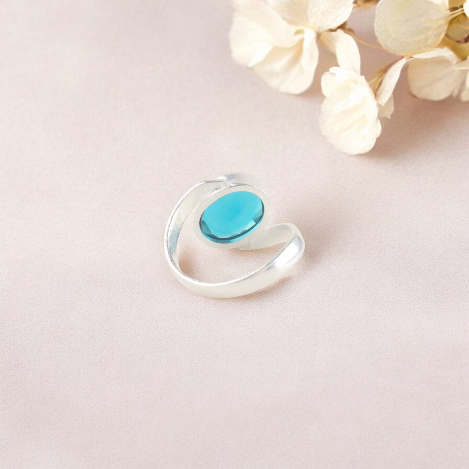 Genuine Blue Apatite Gemstone Ring 925 Sterling Silver Handmade Jewelry For Her