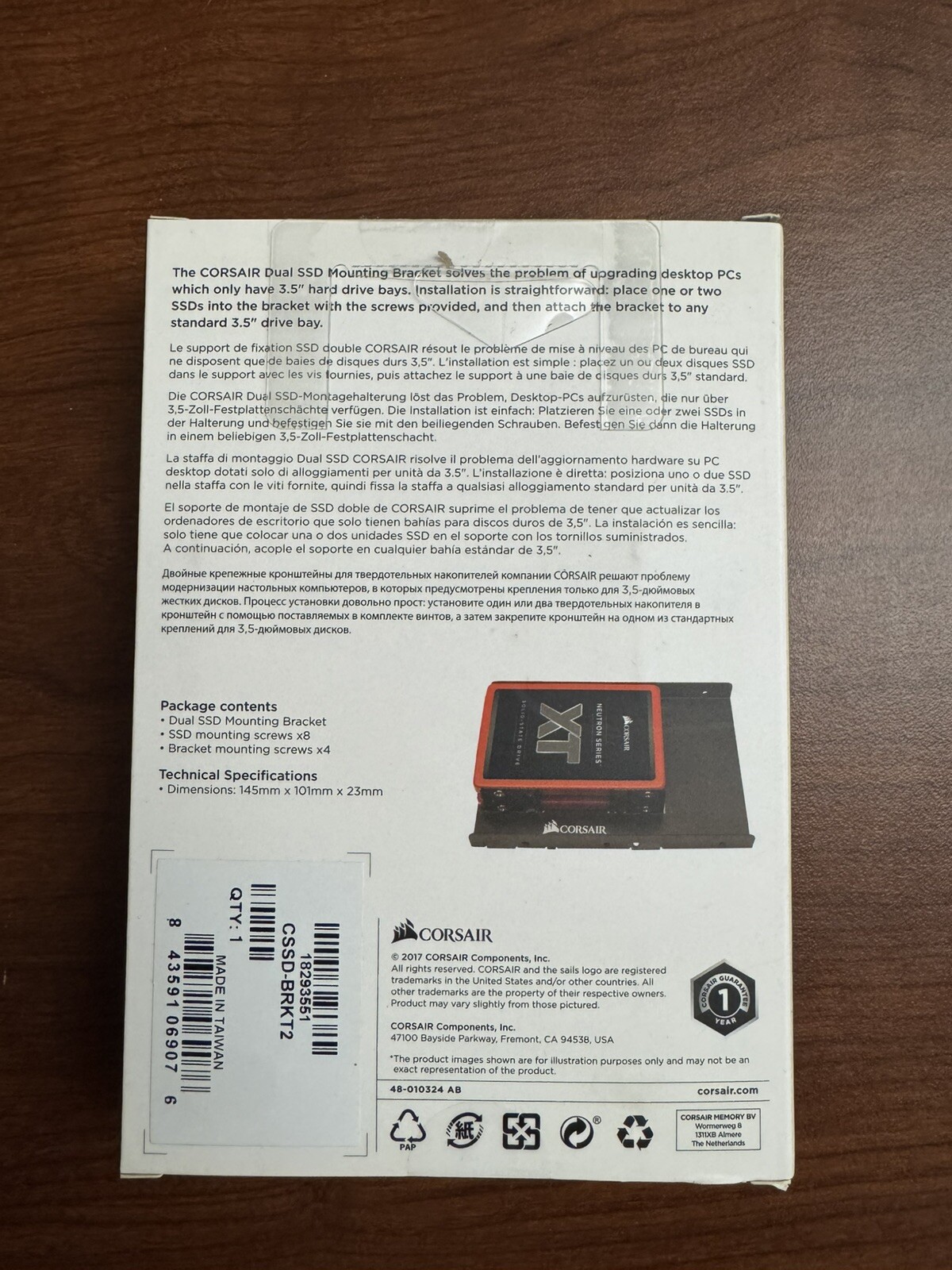 Corsair Dual SSD Solid State Mounting Bracket 3.5 CSSD-BRKT2 Black new in box.