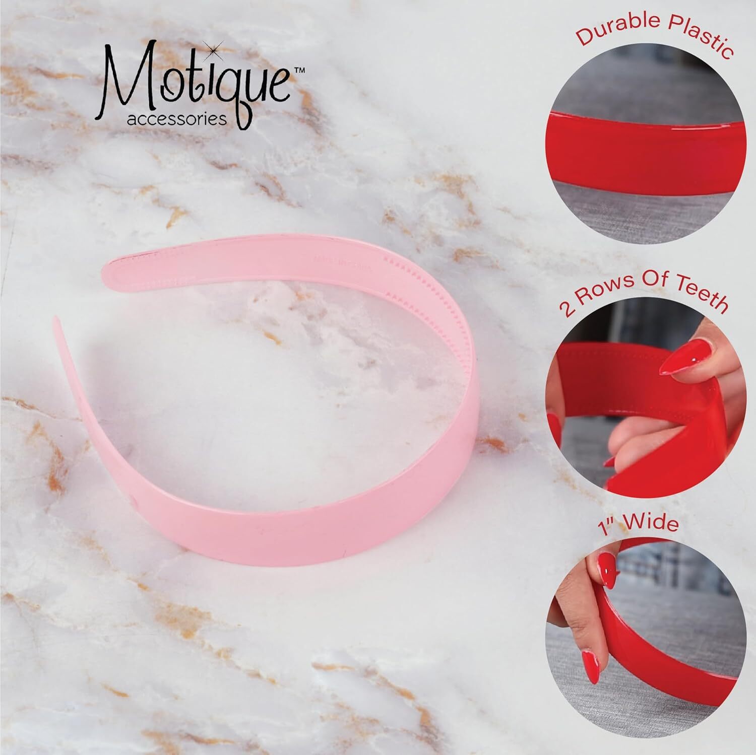 Motique Accessories Black 1 Inch Plastic Hard Headband with Teeth Head band