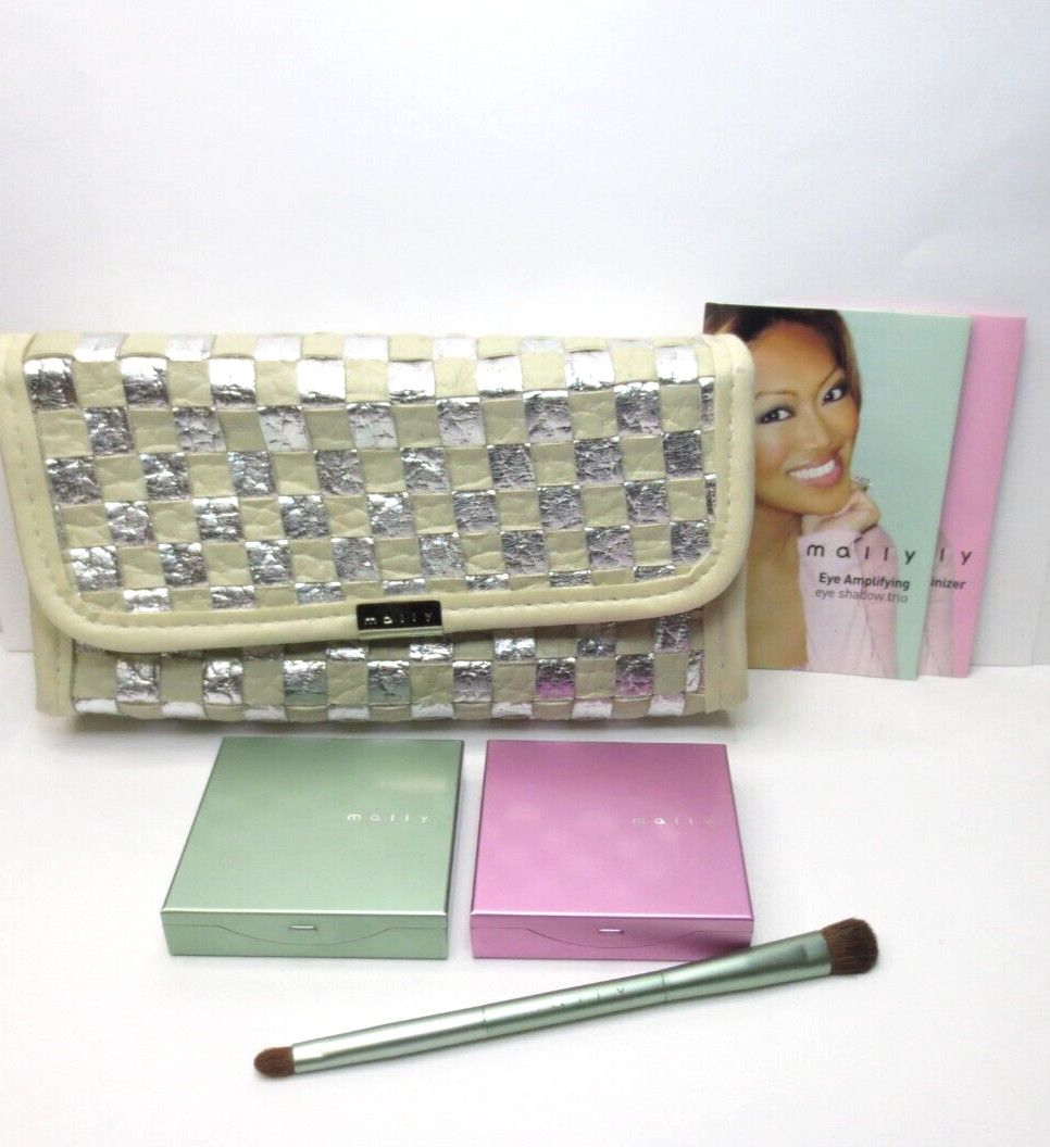MALLY MAKEUP TRAVEL BAG W/ EYESHADOW TRIO, LUMINIZER DOUBLE SIDED BRUSH