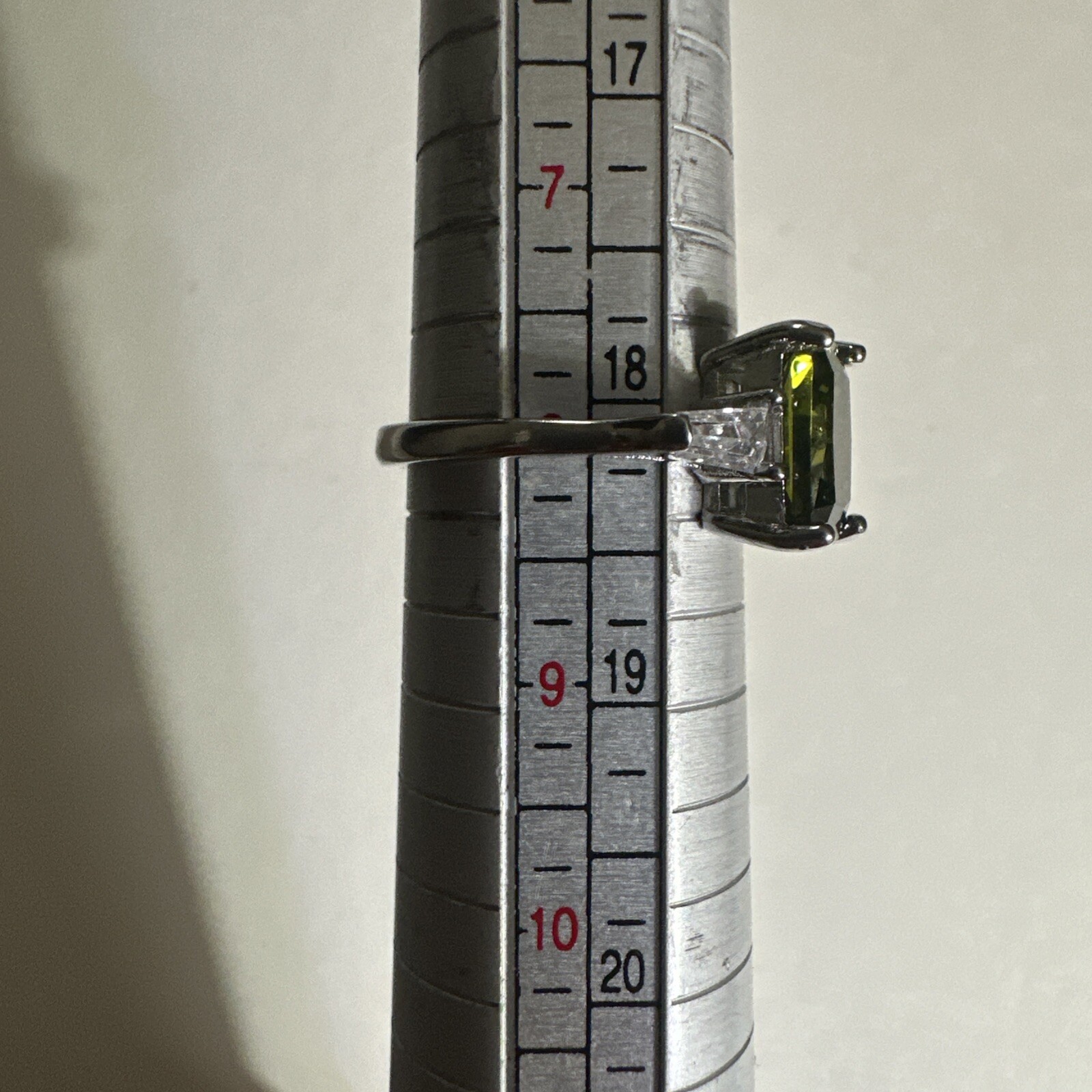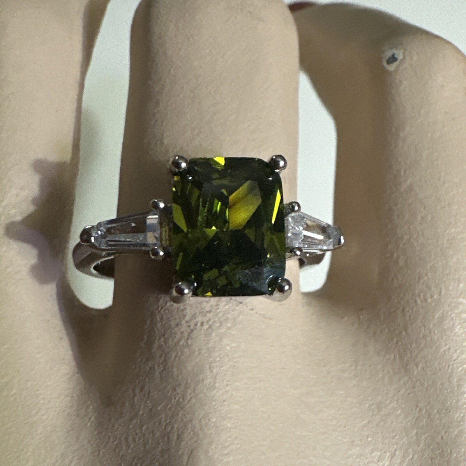 как выглядит 925 Green Peridot Clear Stones Ring - Size 8 фото