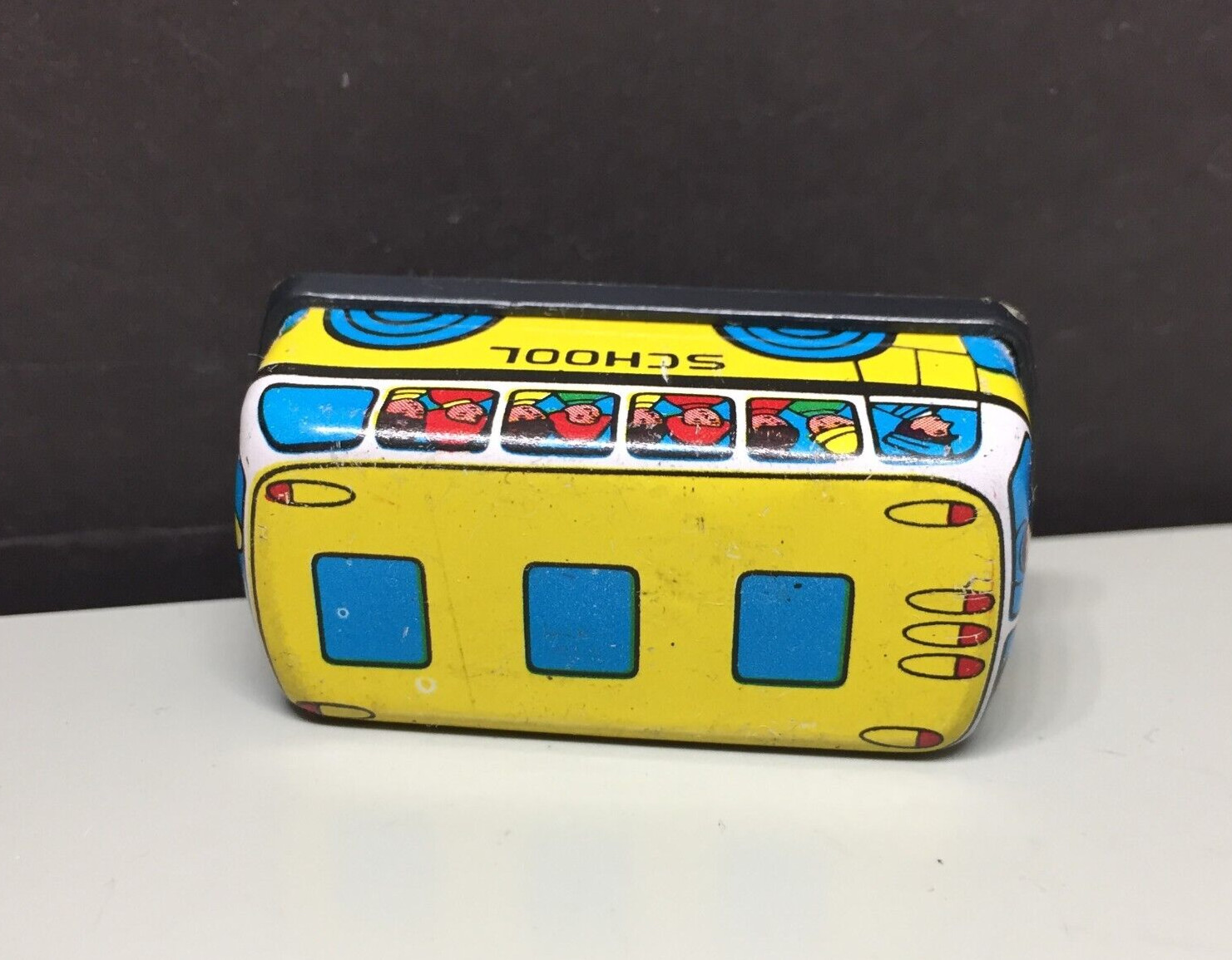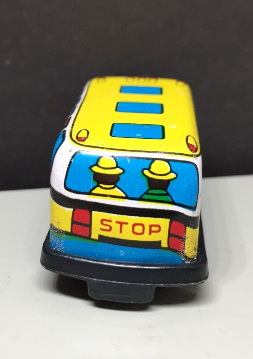 Vintage 1980s Micro Mini Tin Litho Friction School Bus