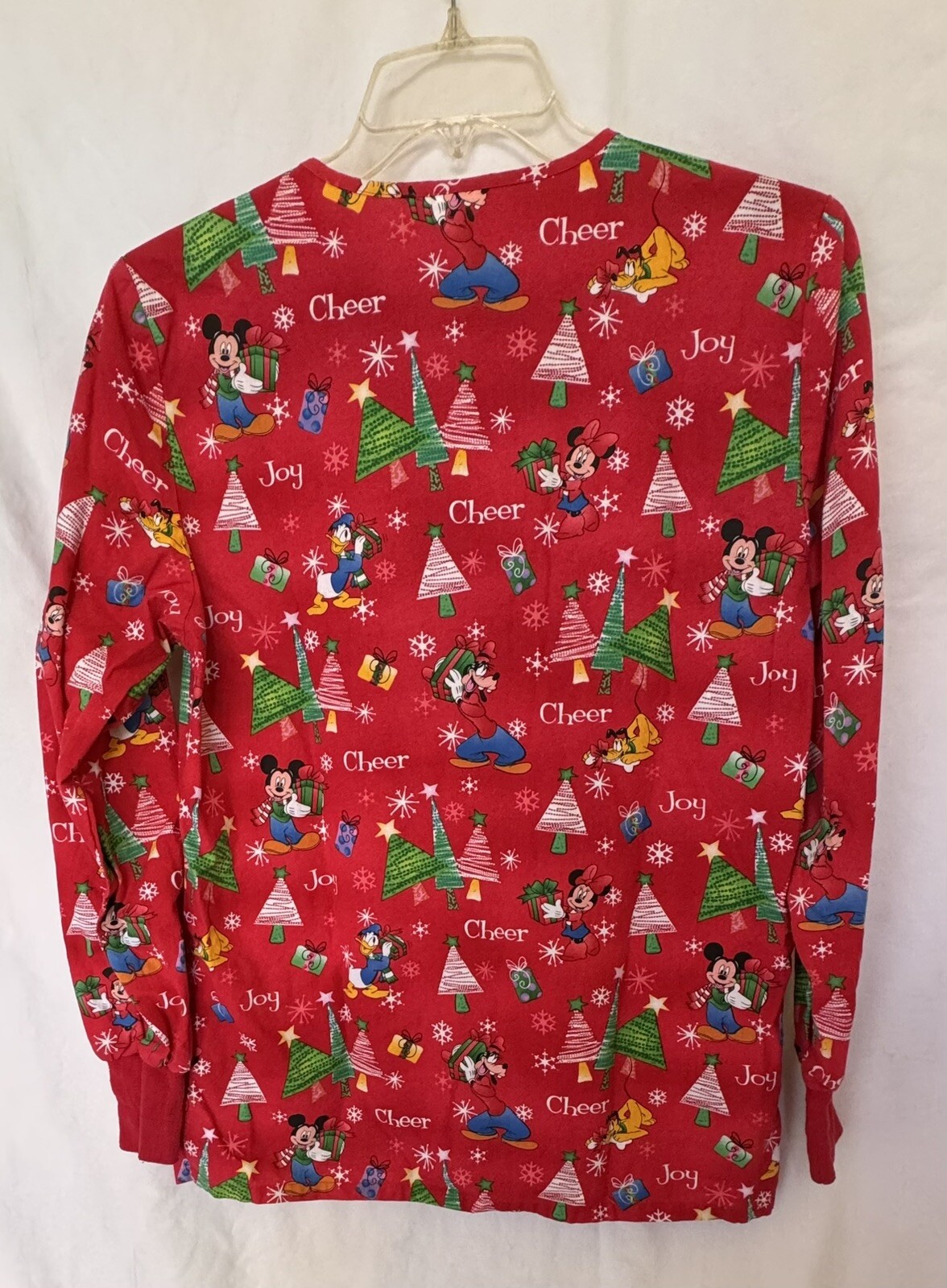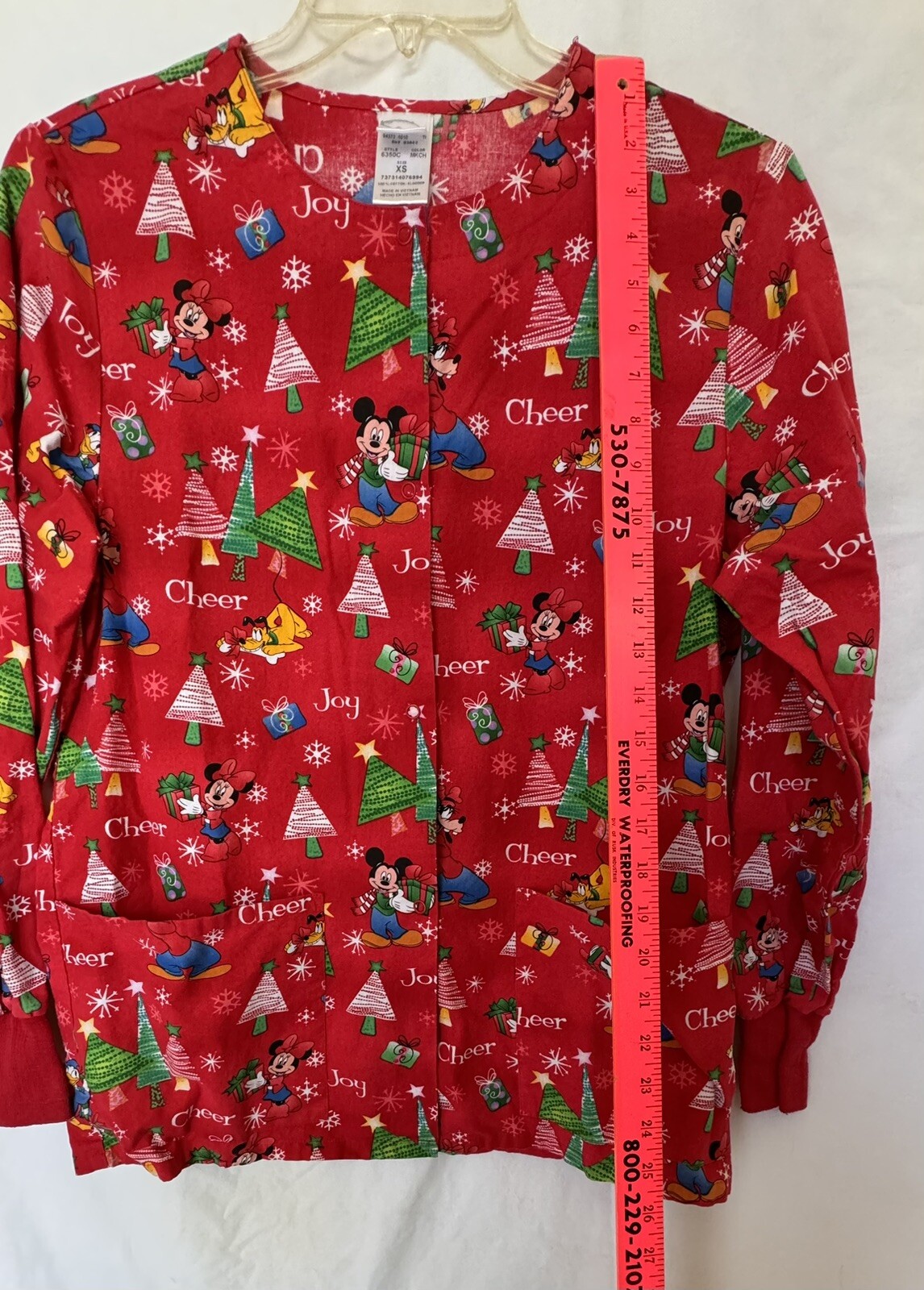 DISNEY Red Mickey Minnie Mouse Christmas Tree LS Scrub Top Size XS