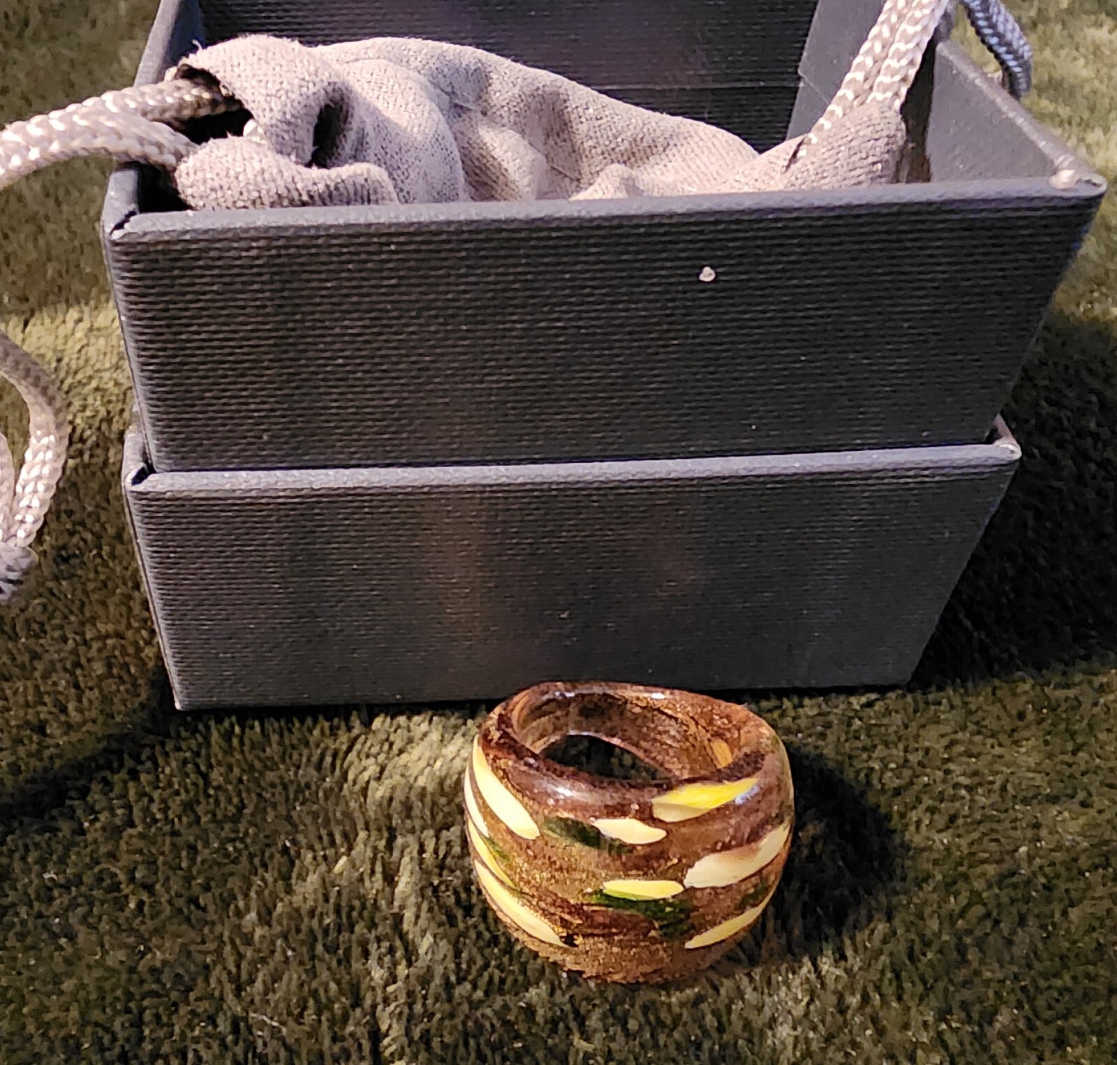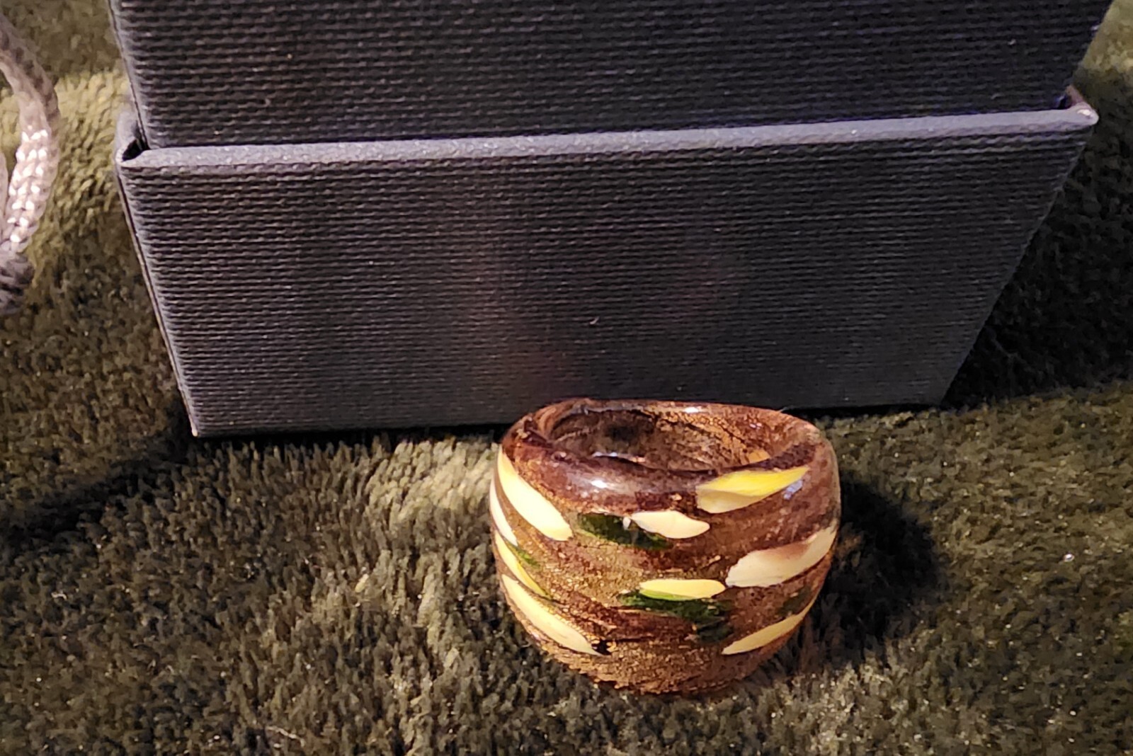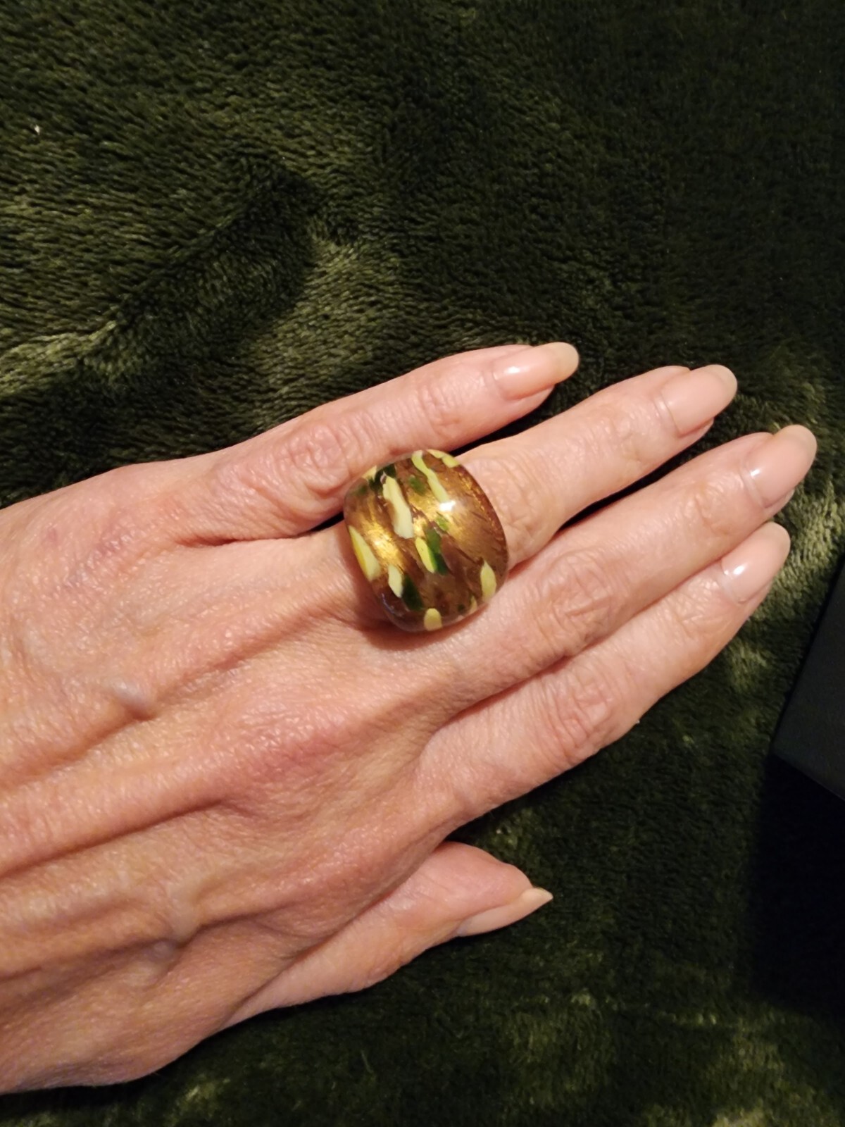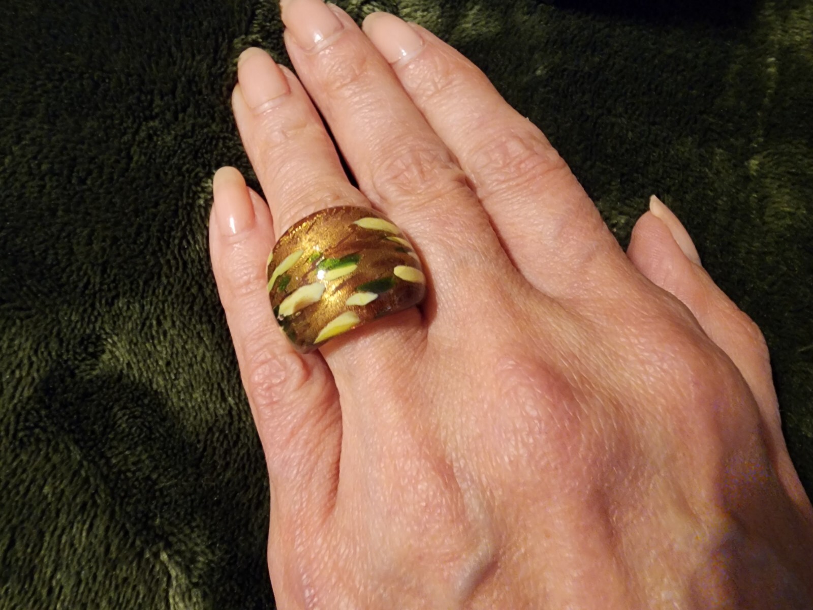 как выглядит Handcrafted Multi Brown/Gold Murano Art Ring Sz 6 NIB From Venice Italy фото