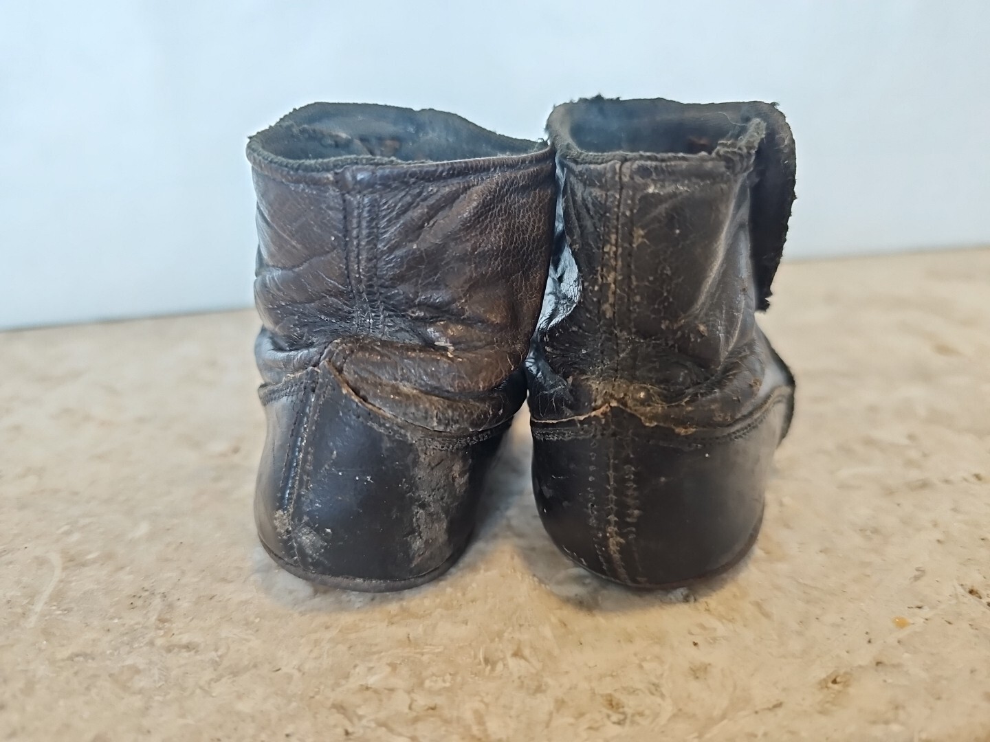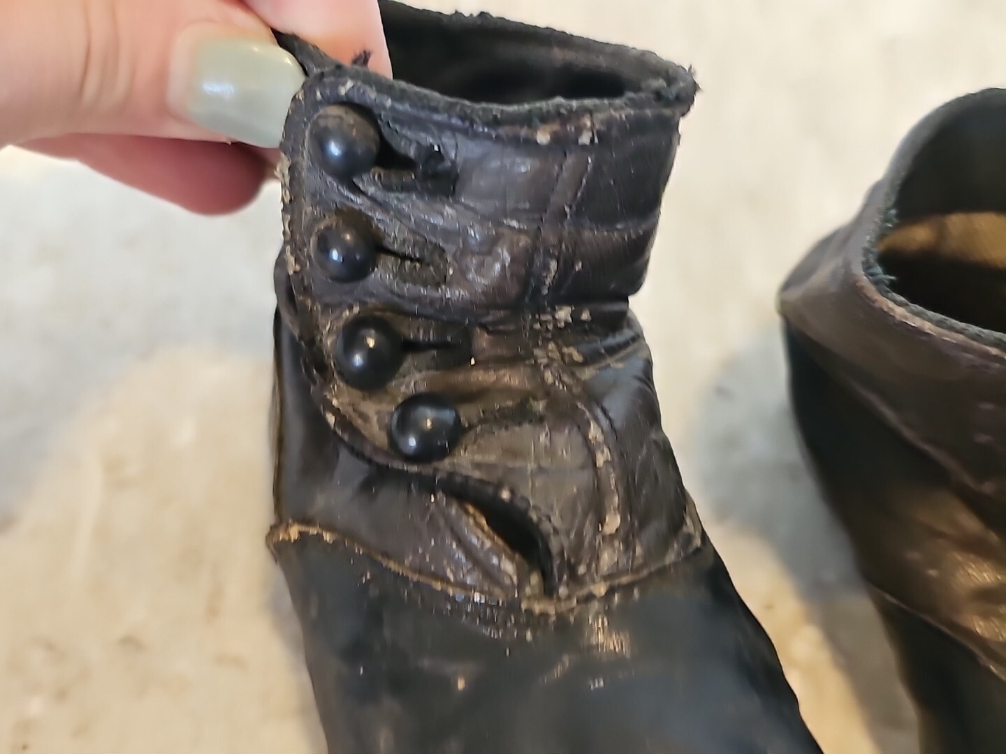 как выглядит Early Old Antique 2 tone blk brn Victorian Childs Leather 4 Button Shoes фото