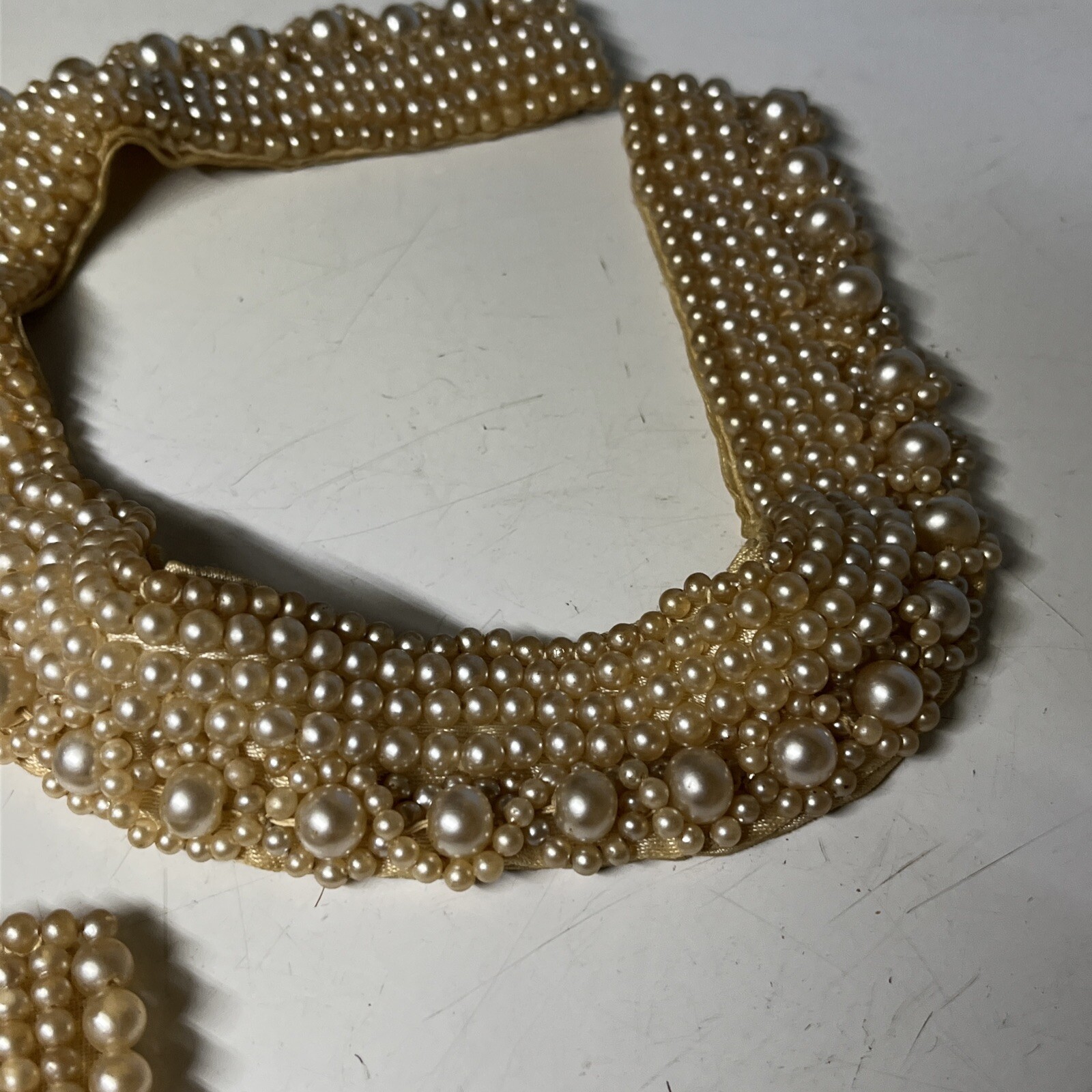 как выглядит Vintage Hand Made Faux Pearl Fashion Collar Choker Lot Of 2 Pieces Hook Loop фото