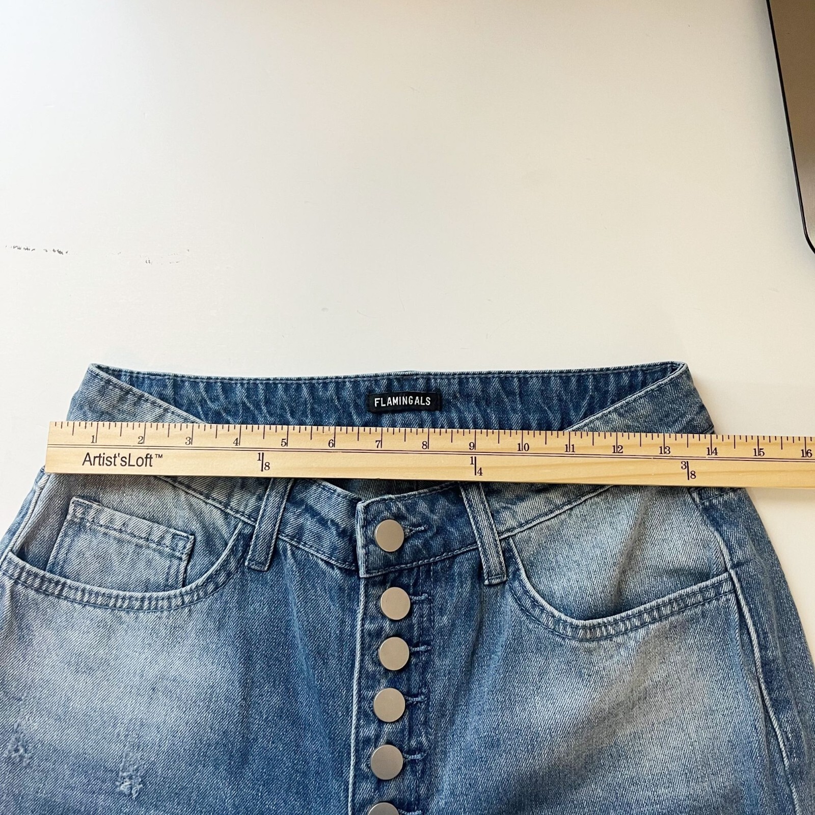 как выглядит Flamingals Light Wash Distressed Denim High Rise Wide Leg Jeans Button Fly SMALL фото