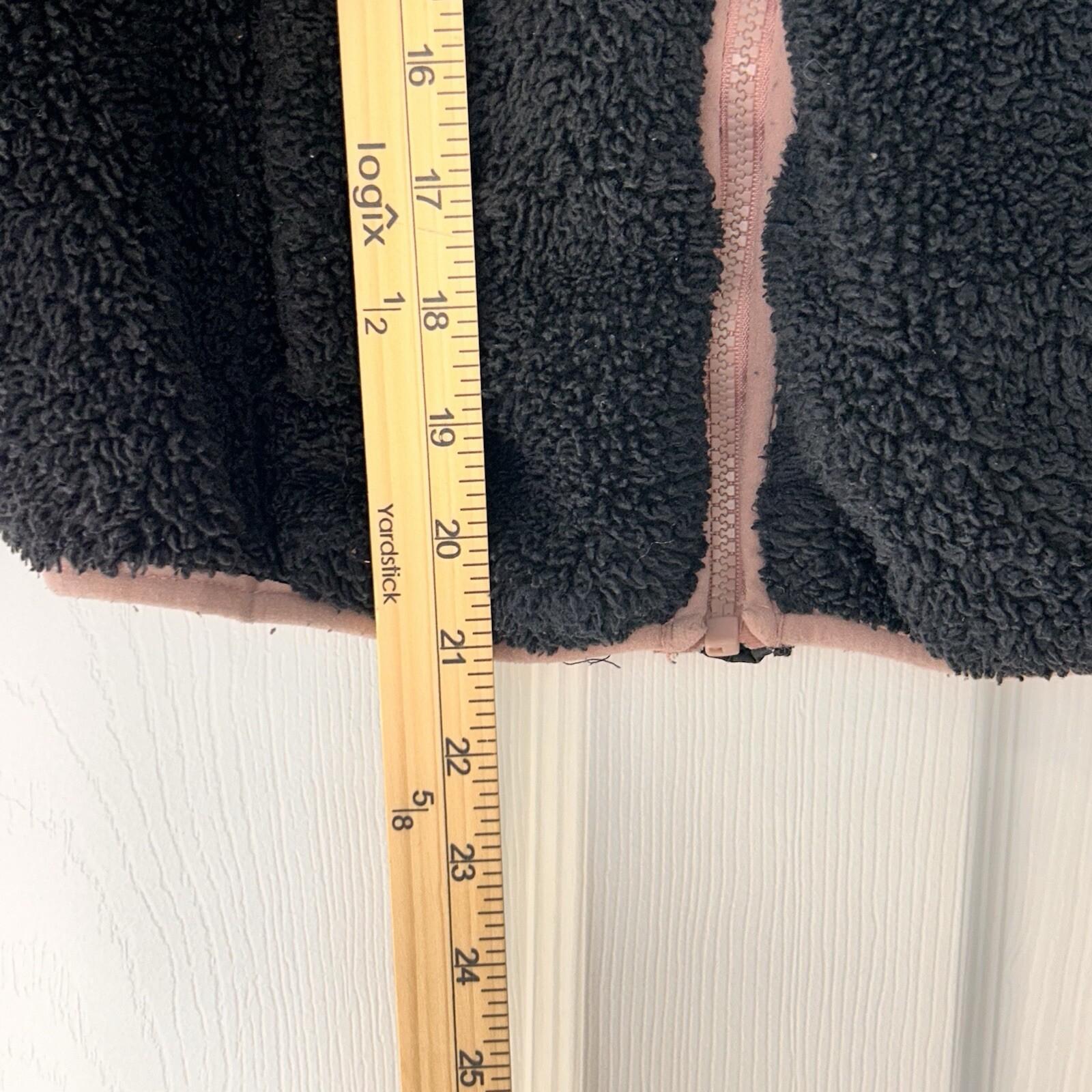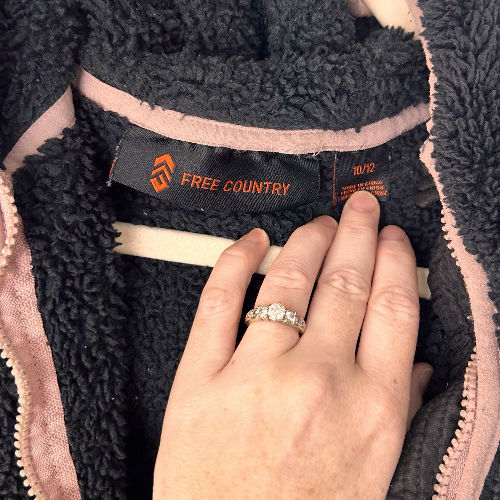 как выглядит Free Country Girls Black Sherpa Jacket with Hood Size 10/12 Pink Accent Zip Up фото