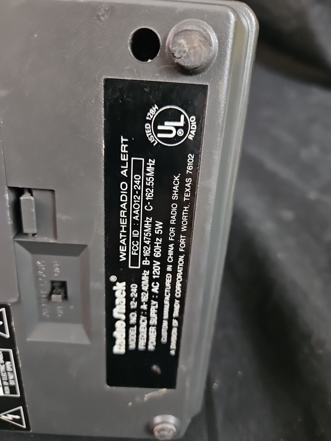 Vintage Radio Shack Weatheradio Alert 12-240 3 Channels Alert Lock