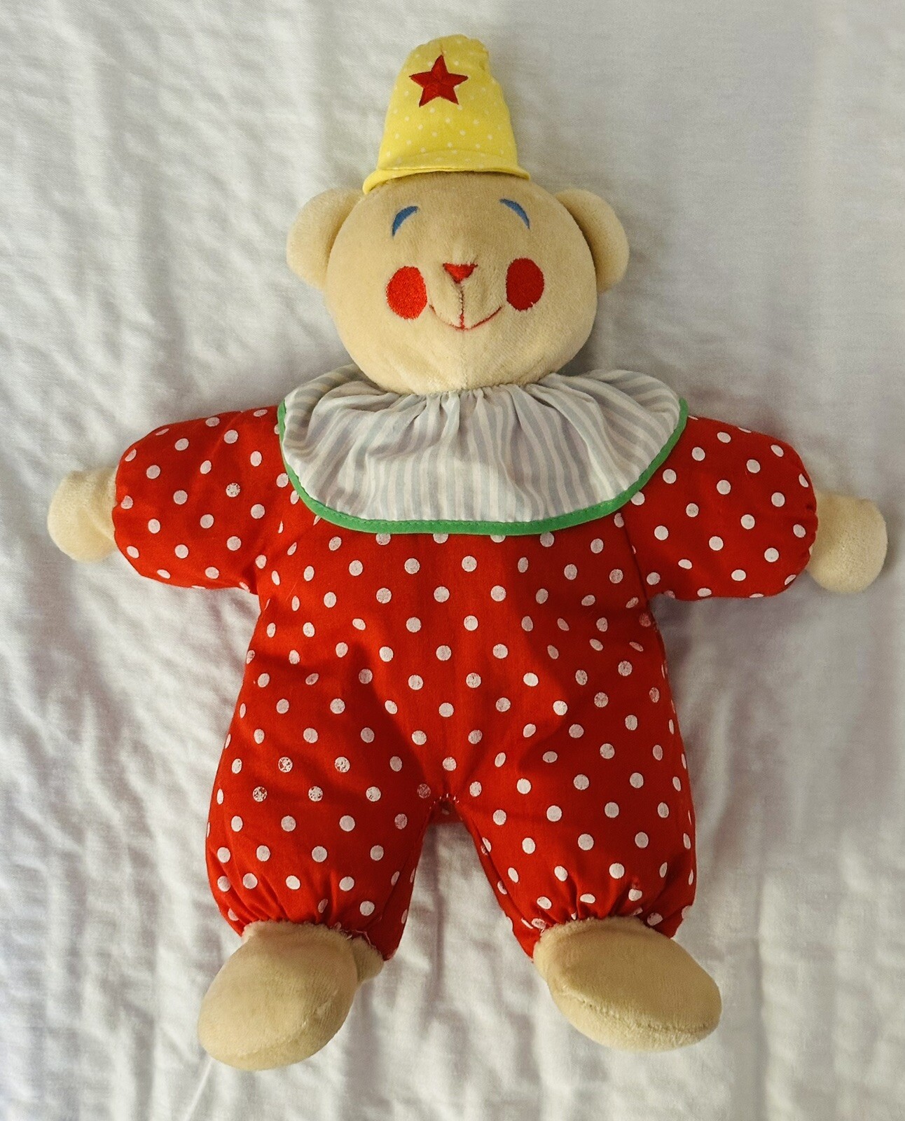 Vtg Eden Clown Teddy Bear Plush Doll Red Polka Dots Yellow Hat 13 Stuffed Toy