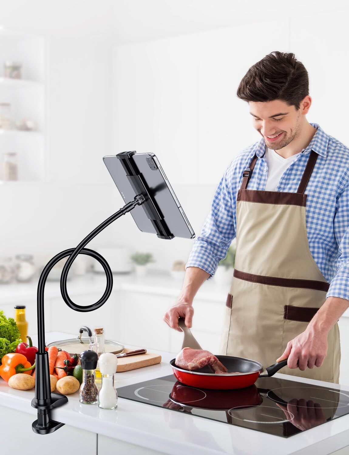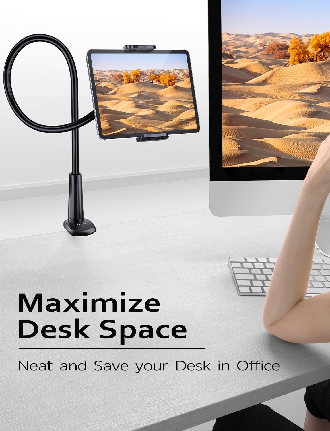 Gooseneck Tablet Holder Stand For Bed Adjustable Flexible Arm Tablets Mount Clam