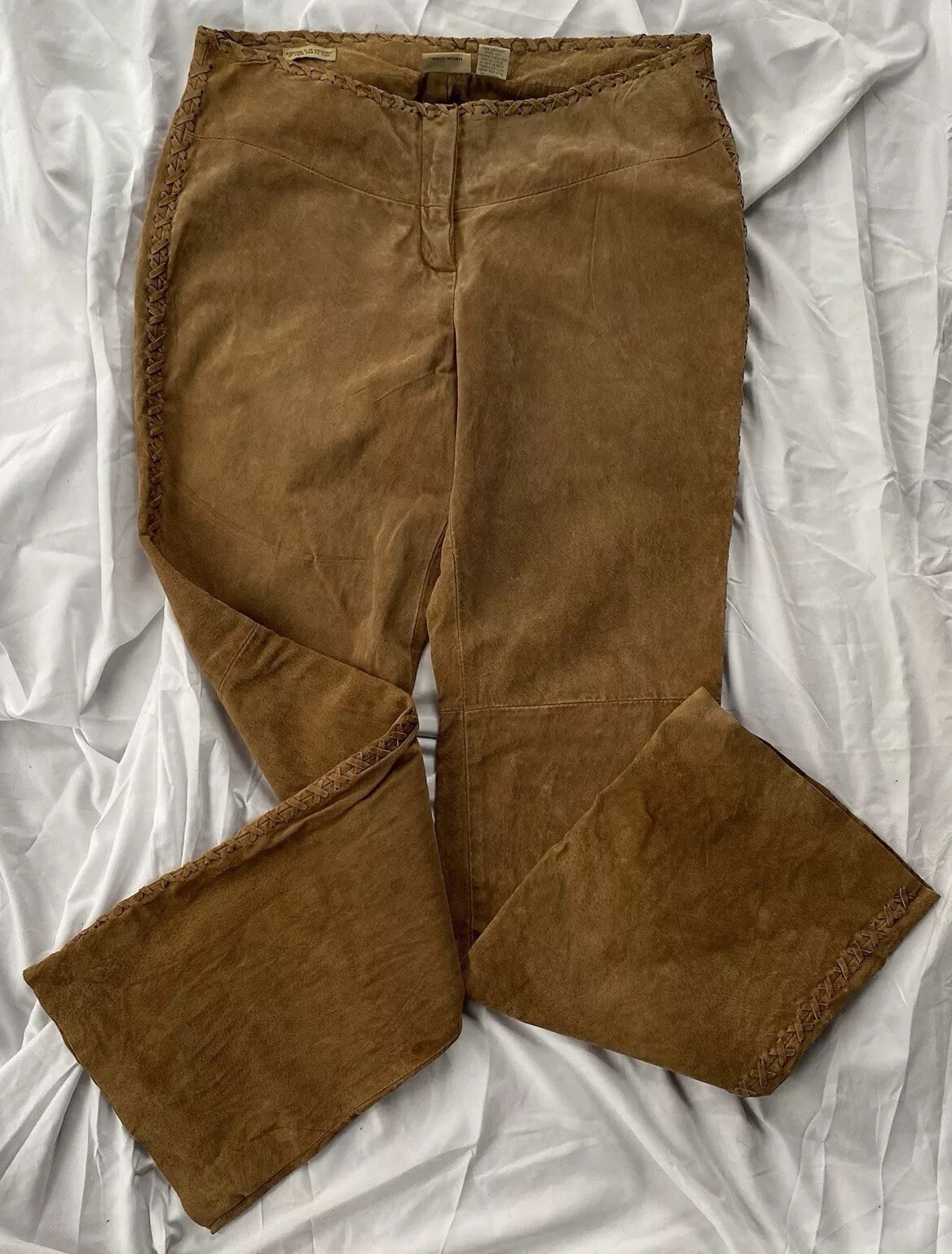 Vtg Ruff Hewn Women s Suede Leather Pants Braided Detail Sz 10 Cowgirl Western
