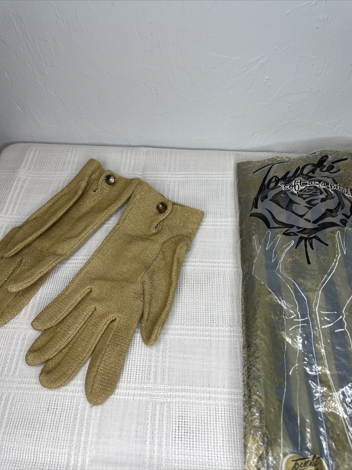 как выглядит Vintage Touche by Fownes Button Up Short Evening Dressy Prom Gloves Sparkly Gold фото