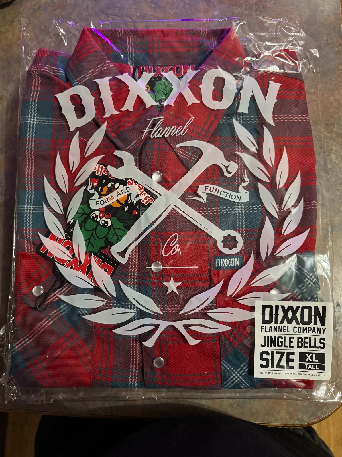 Dixxon Jingle Bells Men's XLT Red Green Pearl Snap Flannel Extra Large Tall