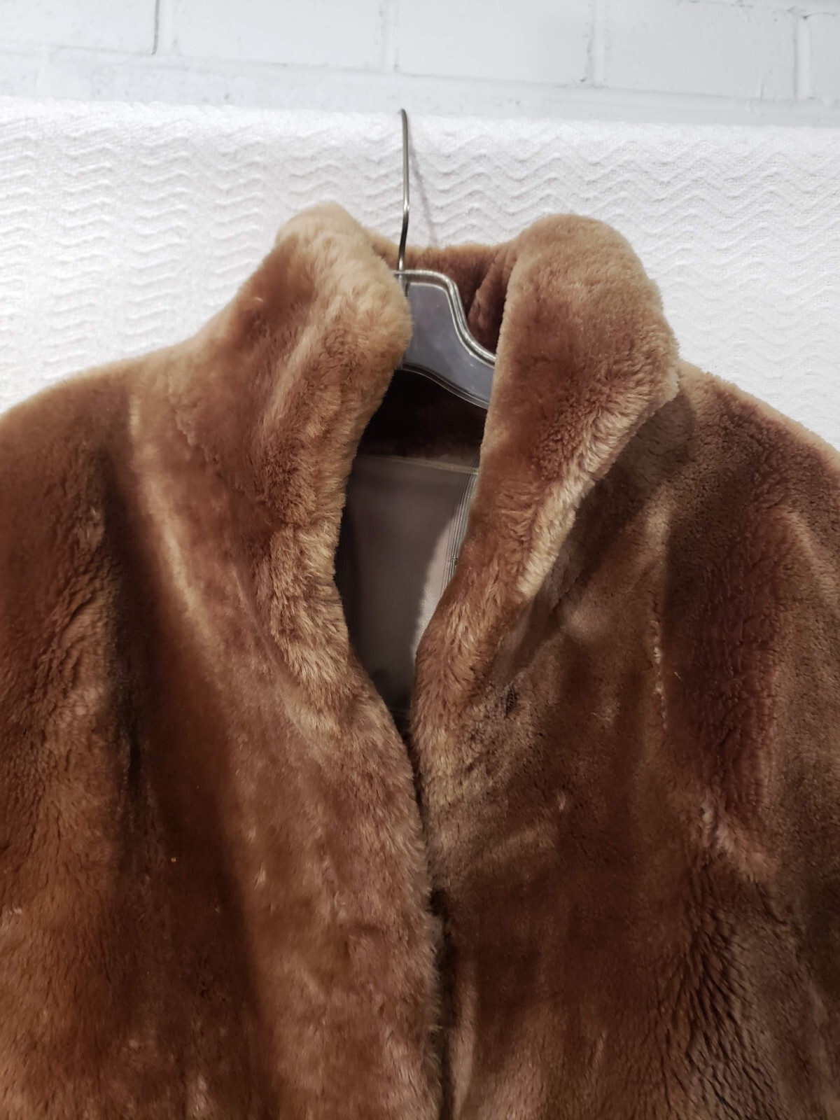 как выглядит Vtg Mouton Thick Dyed Shearling Fur Lambskin Womens Coat M Check measurements фото