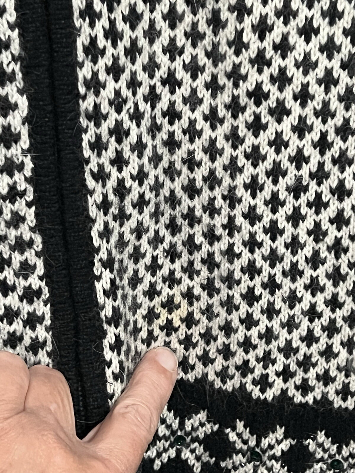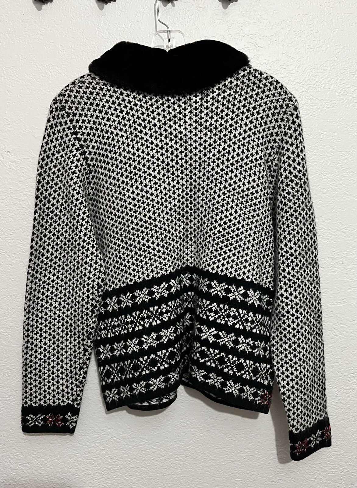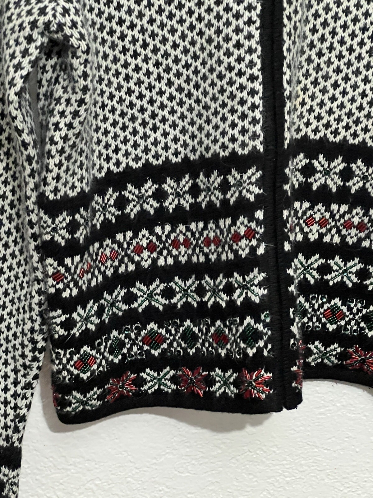 как выглядит Sm Vtg Angora Blend Holiday Beaded Poinsettia Full Zip Sweater Grandma core фото
