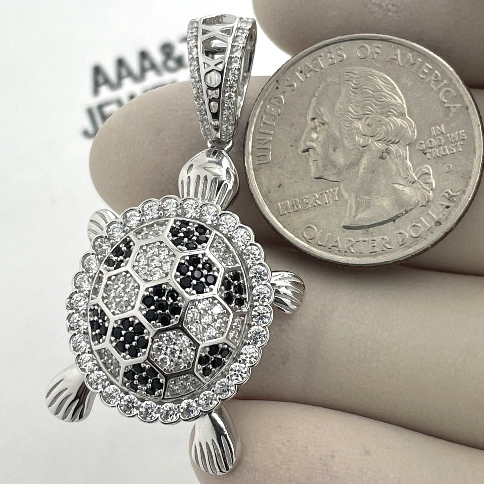 как выглядит 925 Solid Sterling Silver Cubic Zirconia Turtle Pendant фото