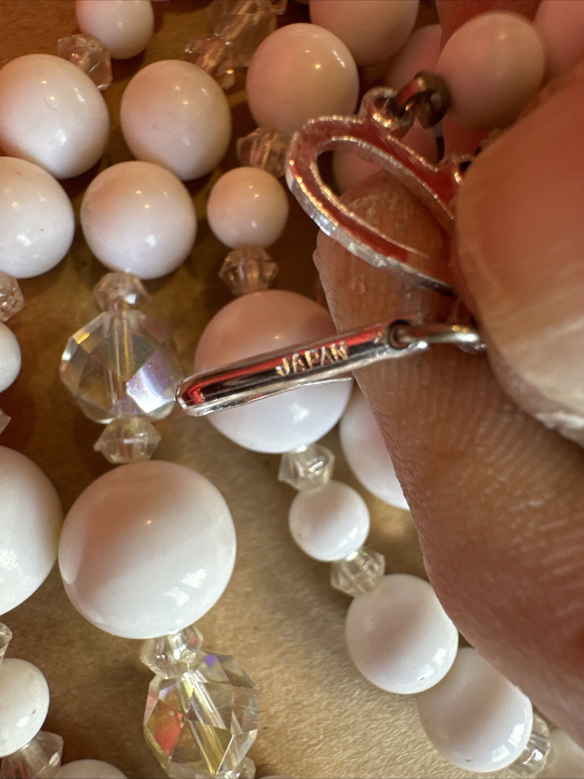 как выглядит Vintage Mid Century 4 Strand Cut Crystal and Faux Pearl Necklace - Marked Japan фото
