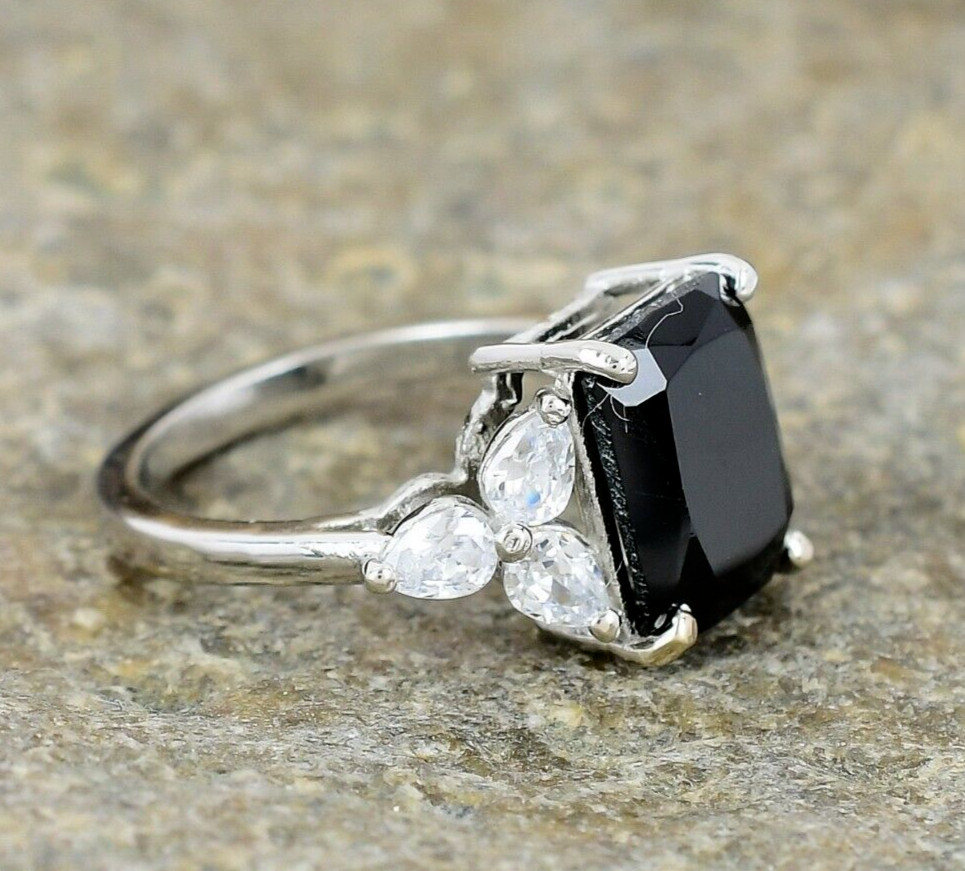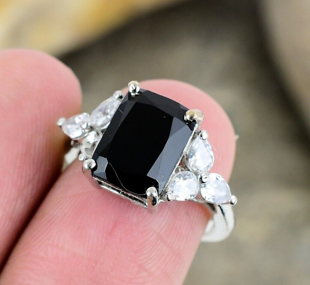 как выглядит Black Onyx Ring 925 Sterling Silver Ring Topaz Ring Engagement Ring Women Ring фото