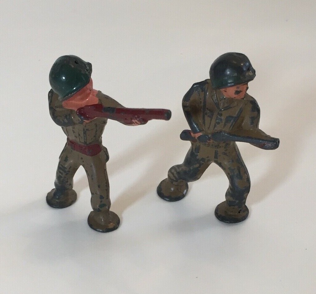 2 Vintage Barclay Manoil Lead Toy Soldier Figures w/ Rifles Pod Feet 1950's 2.5