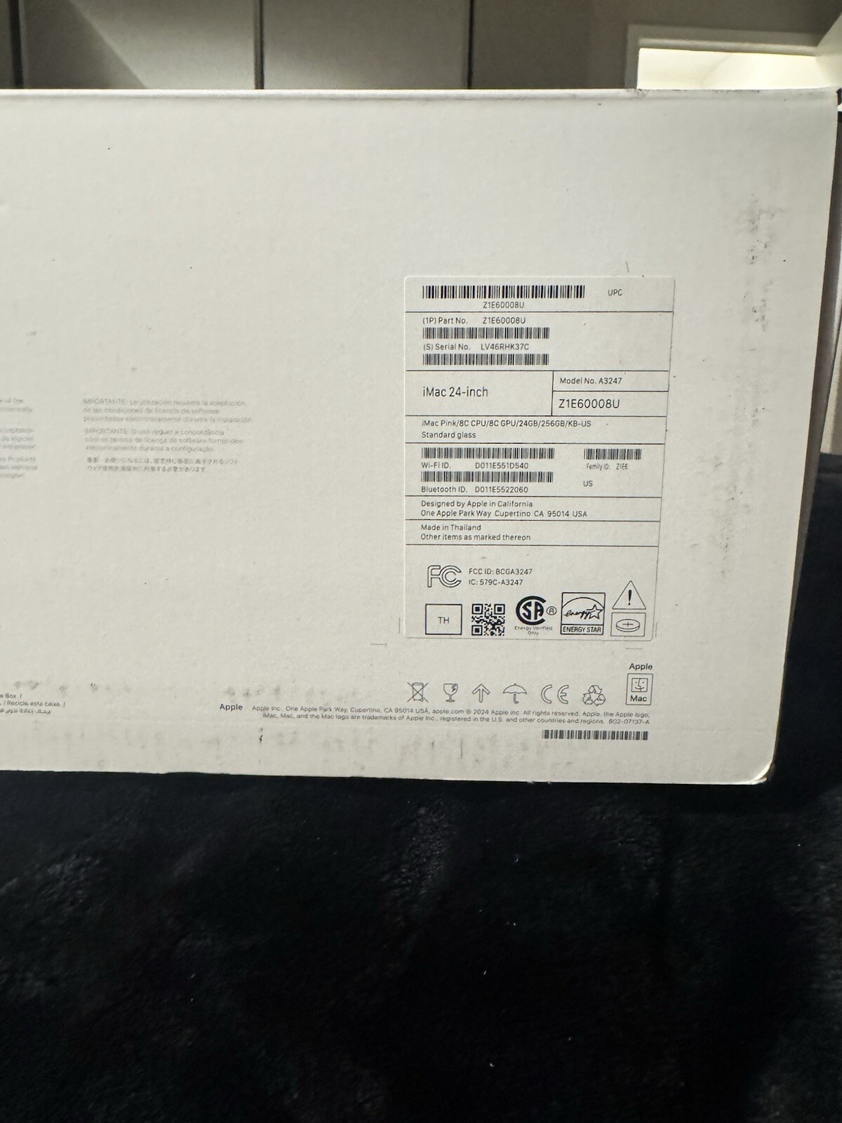 Apple 24 iMac Empty Shipping Box 2024 with Cardboard Inserts Model A2873