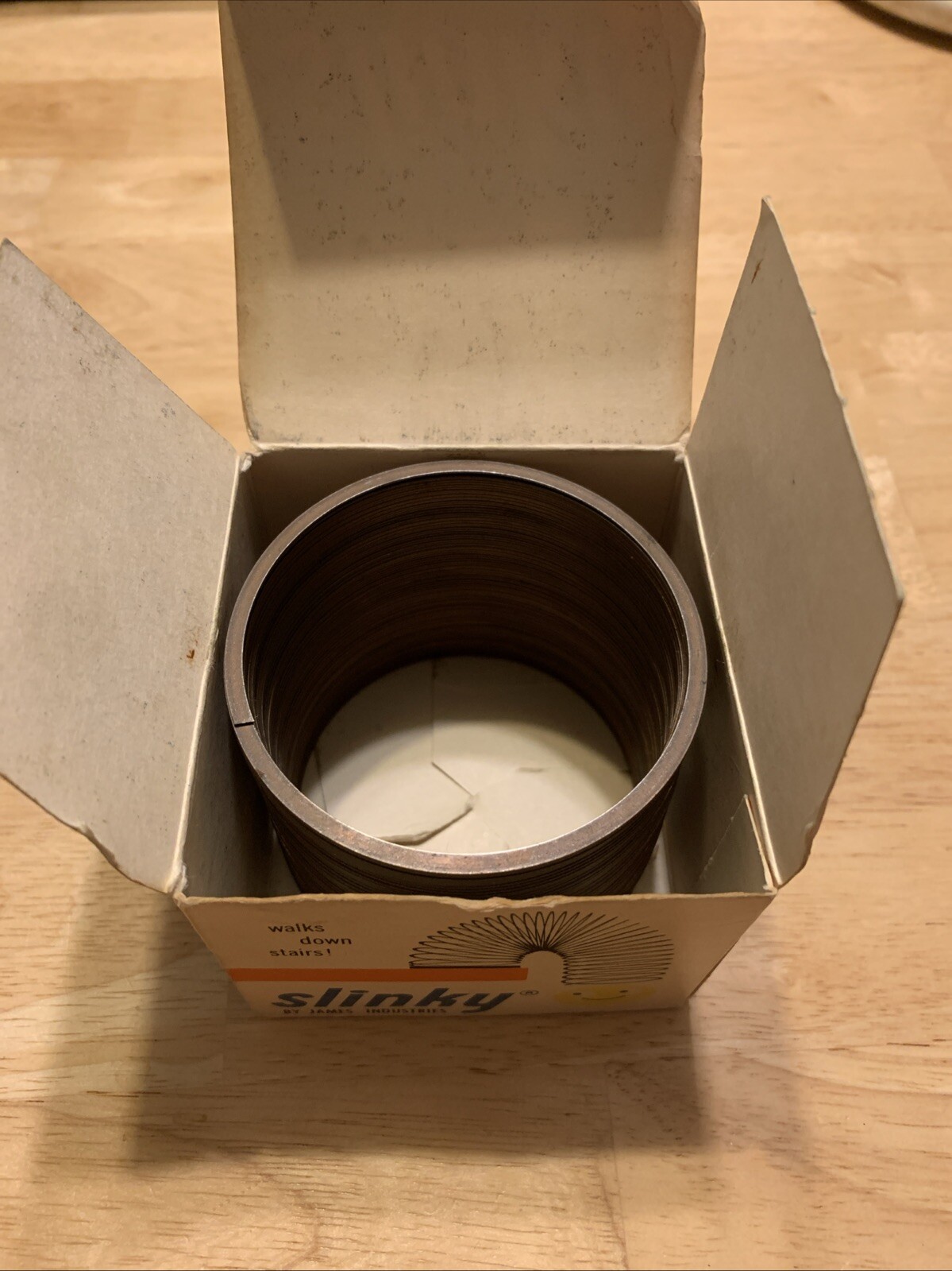 как выглядит Vintage James Industries Metal Slinky Toy with Original Box Made in USA фото