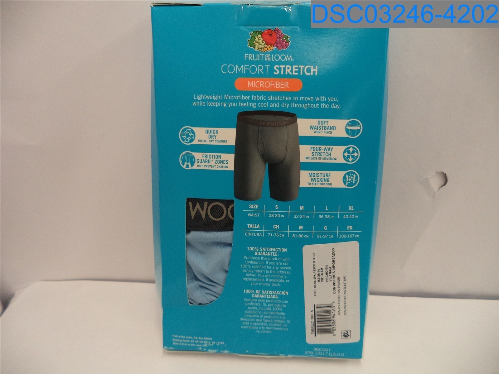 Qty 1 1 Pack of 4 : Fruit of The Loom: Men's Small Multicolor Long Leg Boxers