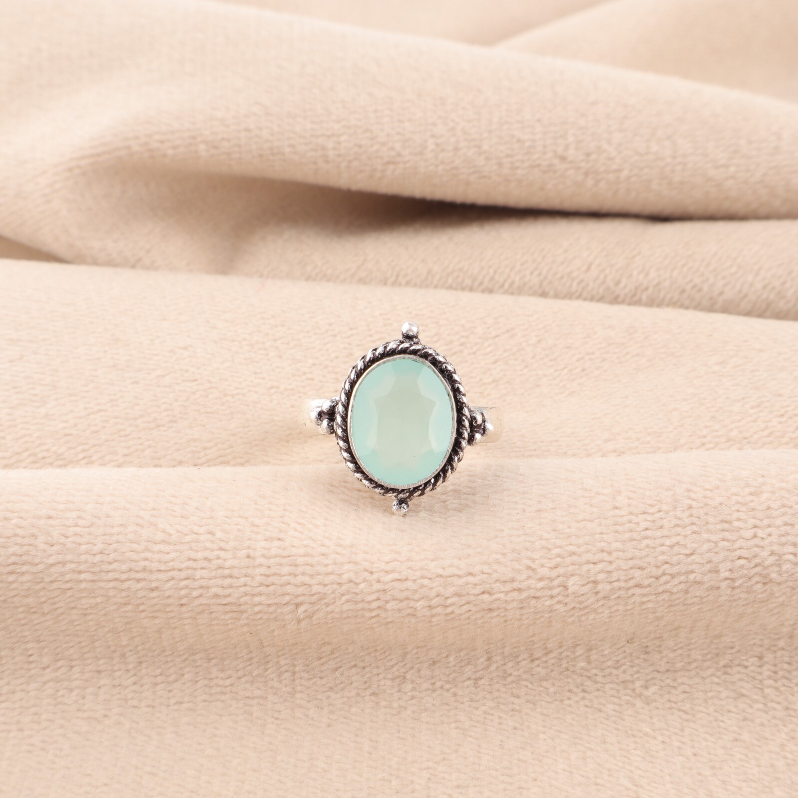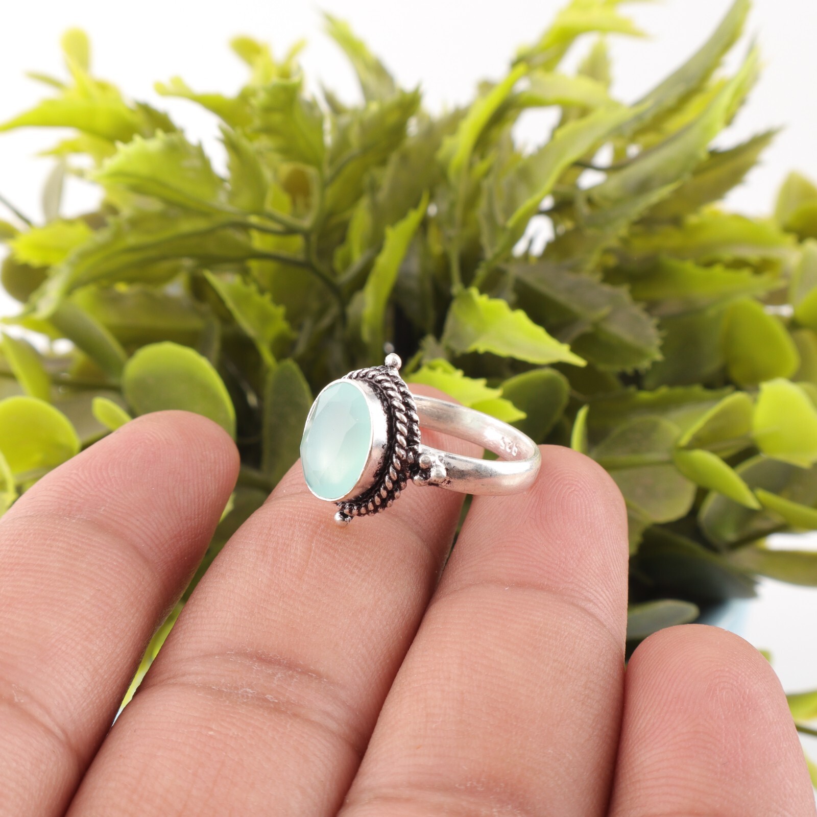 как выглядит Aqua Chalcedony Gemstone 925 Fine Silver Jewelry Handmade March Birthstone Ring фото